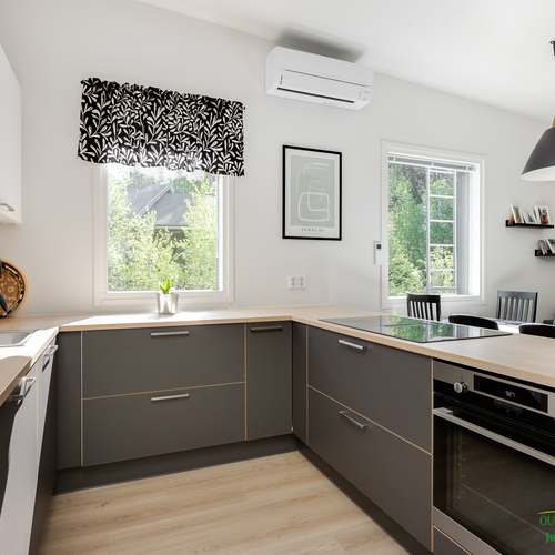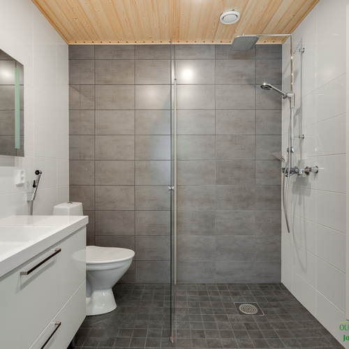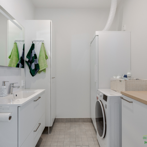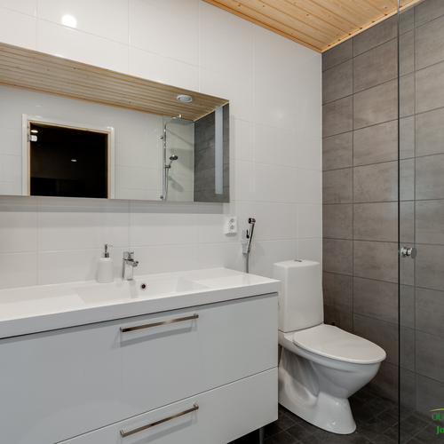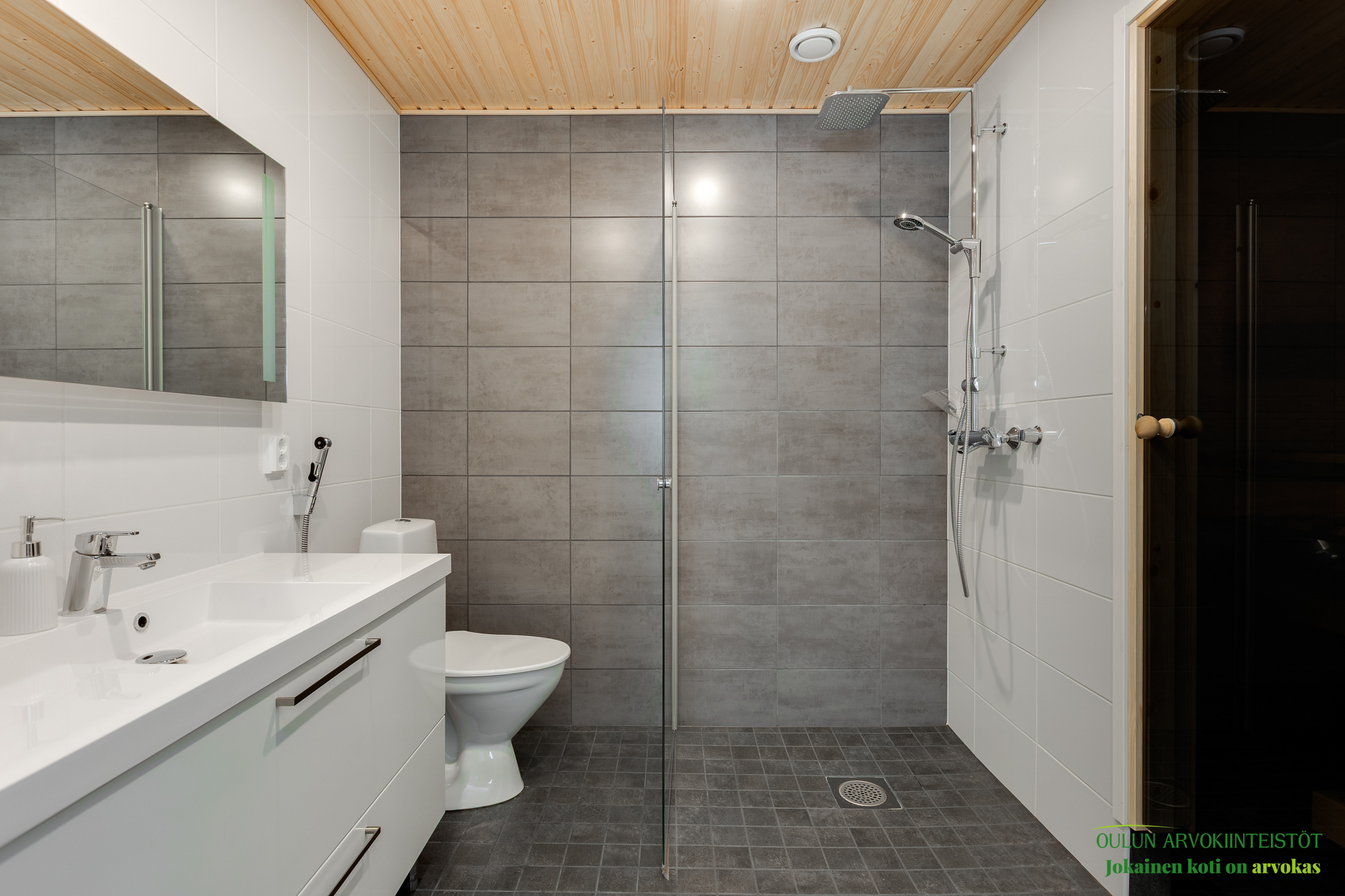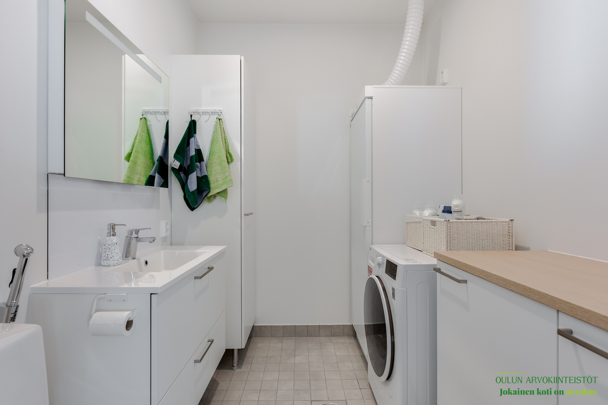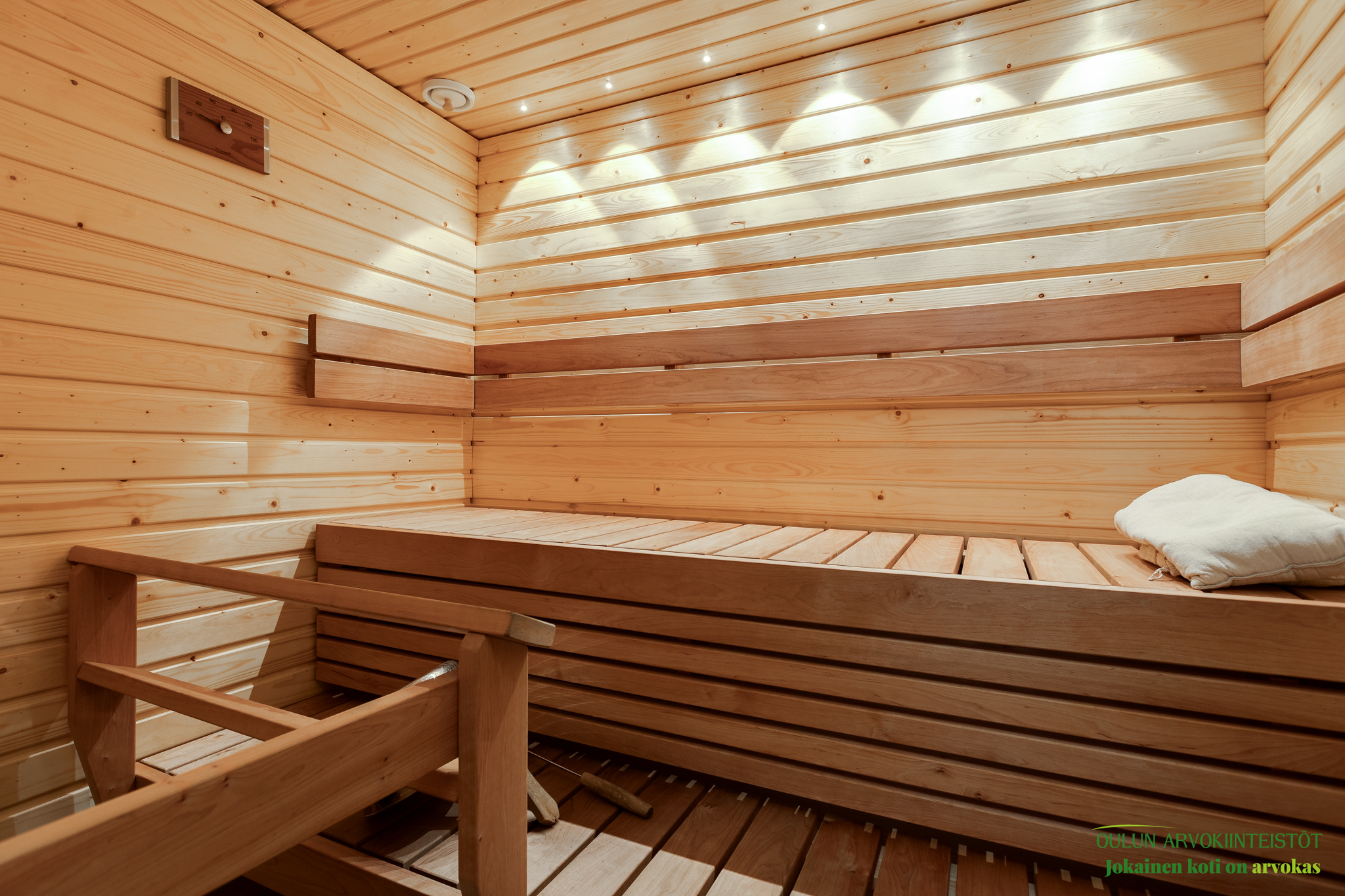 Kylpyhuoneessa on tyylikkäät kaakelipinnat, oma sauna ja käytännölliset säilytysratkaisut. Erillinen wc tuo toimivuutta. Kodin ilmalämpöpumppu ja huoneistokohtainen ilmanvaihtokone huolehtivat tasaisesta ja miellyttävästä sisäilmasta. Sähkönkulutus on ollut noin 10 500 kWh vuodessa, joka sis. käyttösähkön.