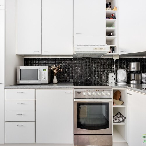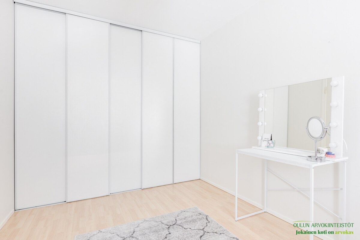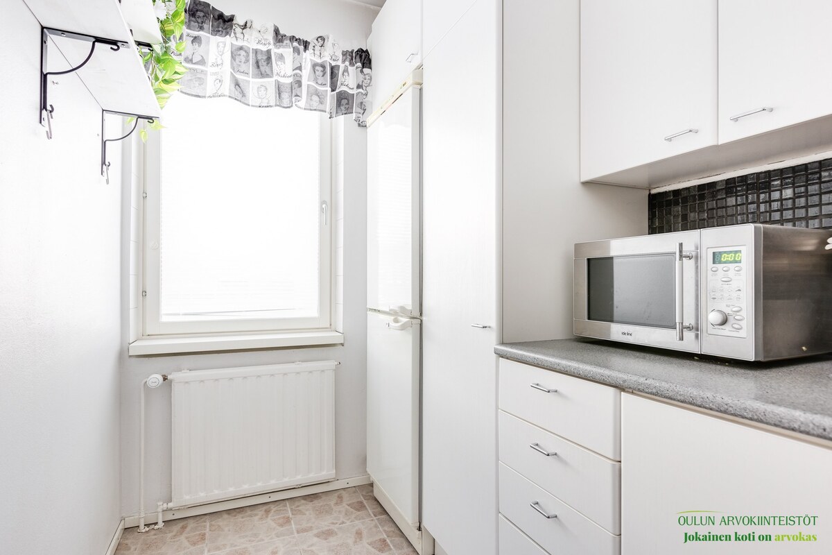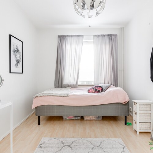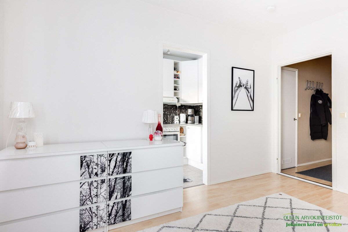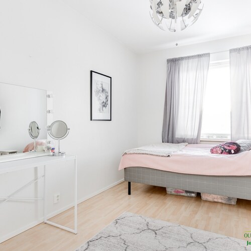 Toimiva pohjaratkaisu erillisellä keittiöllä tarjoaa käytännöllisyyttä, isot ikkunat valoisuutta ja remontoidussa kylpyhuoneessa on tilaa pyykinpesukoneelle. Erillinen vaatehuone, liukuovikaapistot makuuhuoneessa sekä kaksi varastoa tuovat hyvin säilytystilaa.