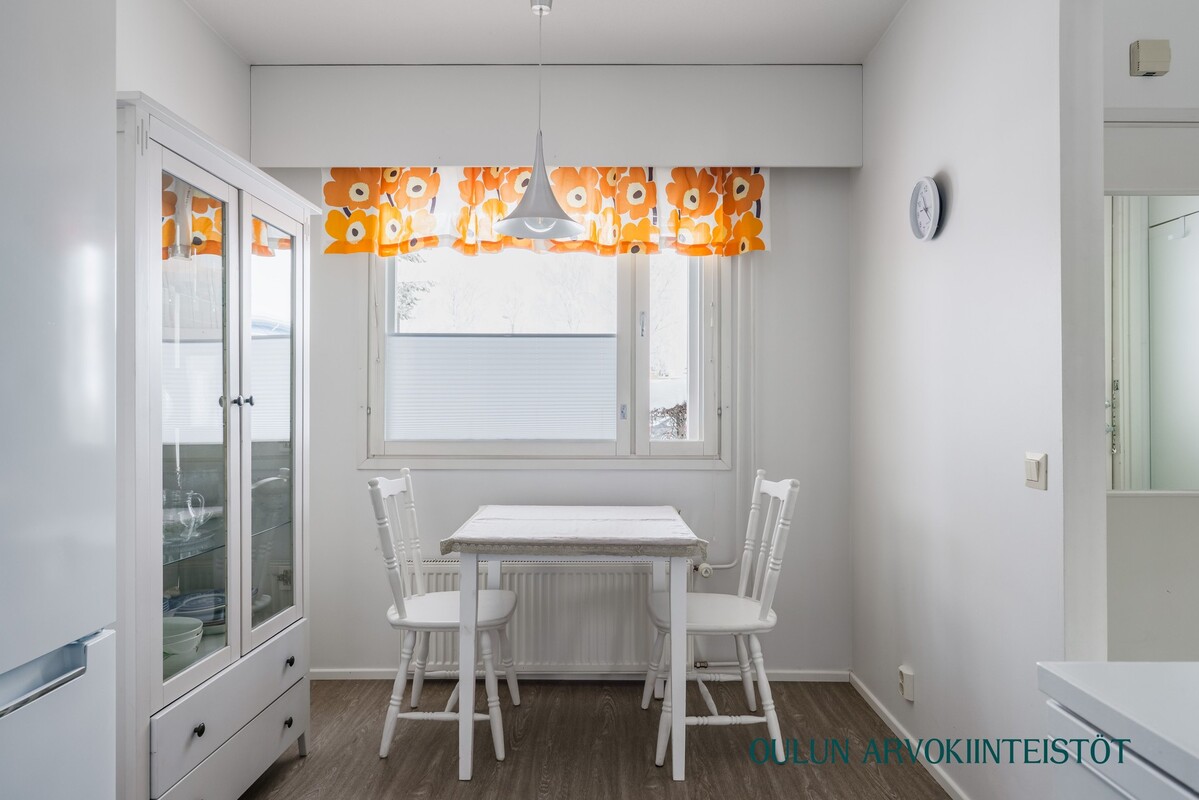 Sijainti on yksi tämän kodin vahvimmista puolista. Keskustan palvelut ovat kävelyetäisyydellä, ja yhteydet Oulun suuntaan ovat sujuvat. Merellinen ympäristö ja lähialueen ulkoilumaastot tuovat viihtyisyyttä ympäri vuoden. Kaikki tarpeellinen on lähellä, mutta asuminen on silti huoletonta.