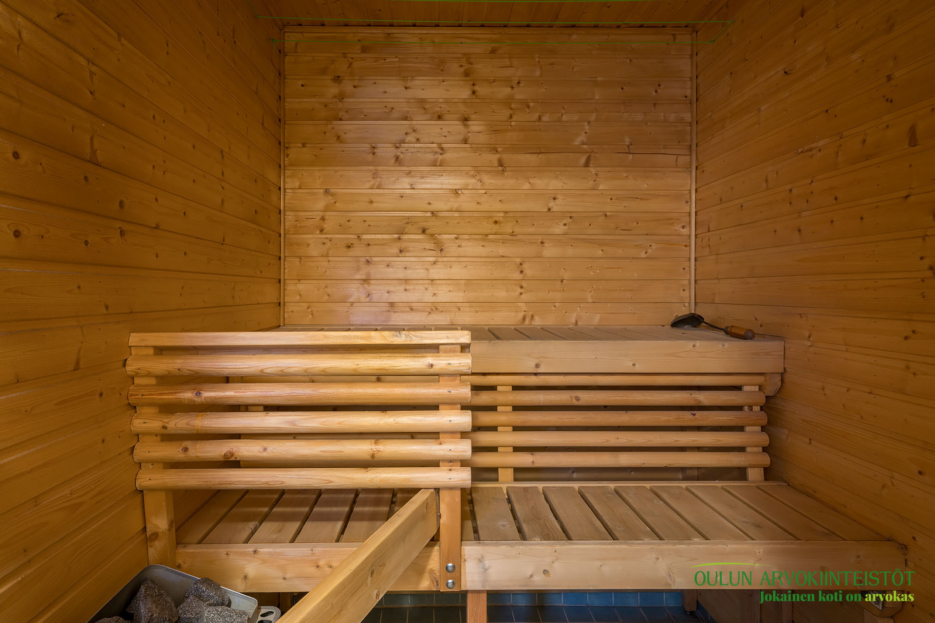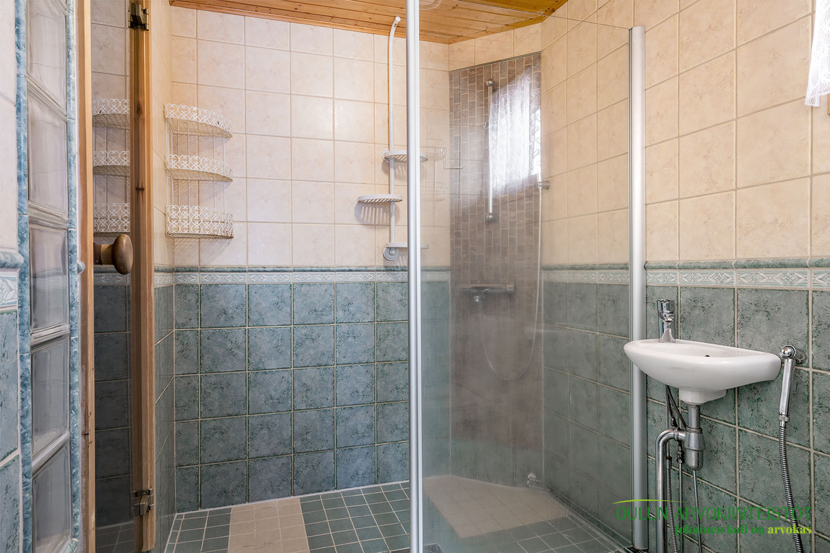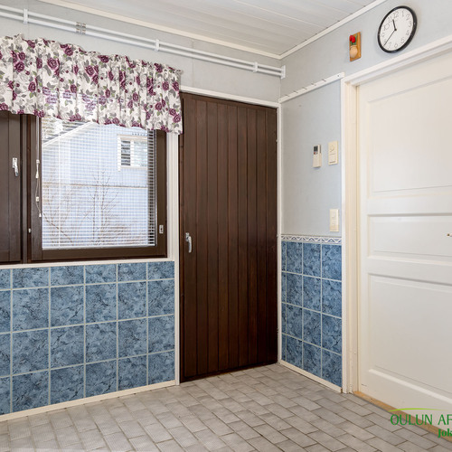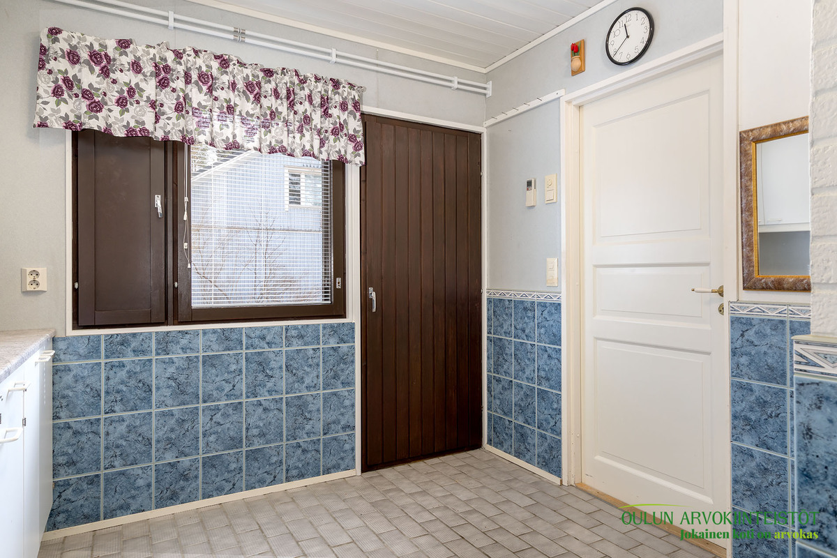Sopivan kokoisessa kodinhoitohuoneessa pyykkihuolto sujuu vaivattomasti ja helposti. Kodinhoitohuoneen, sekä kylpyhuoneen ja saunan ratkaisut ovat toimivat ja järkevät. Täältä pääset mukavasti saunan löylyjen jälkeen suoraan ulos vilvoittelemaan.