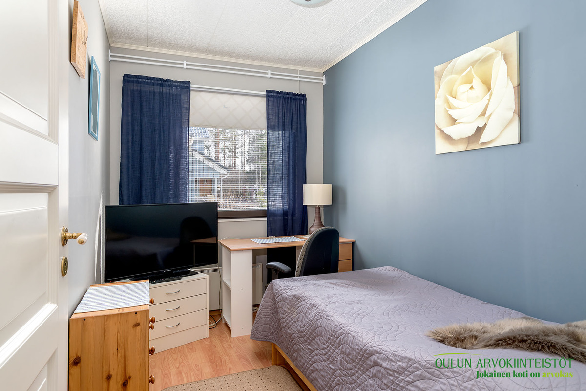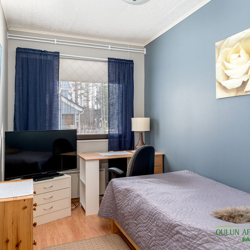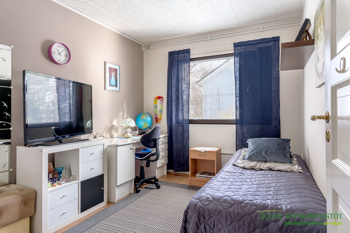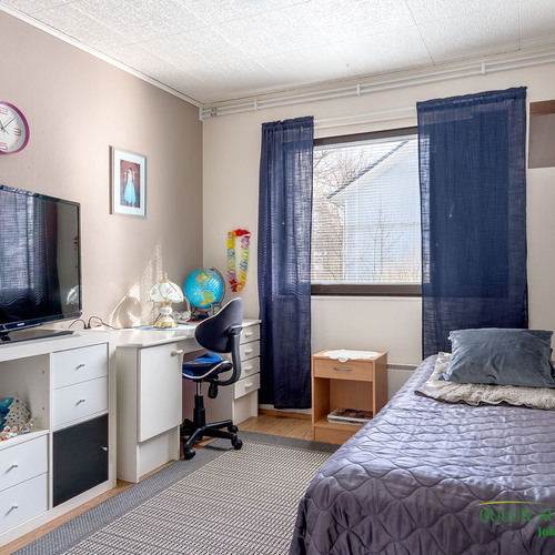 Kodin kolme makuuhuonetta on sijoitettu järkevästi ja kaikki huoneet ovat hyvän kokoisia ja kaappitilaakin löytyy.