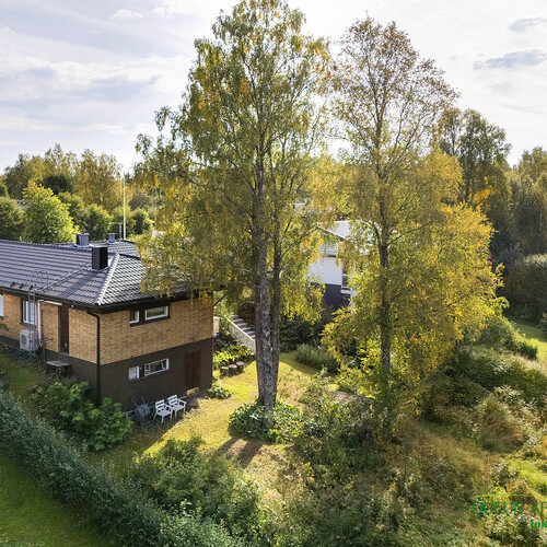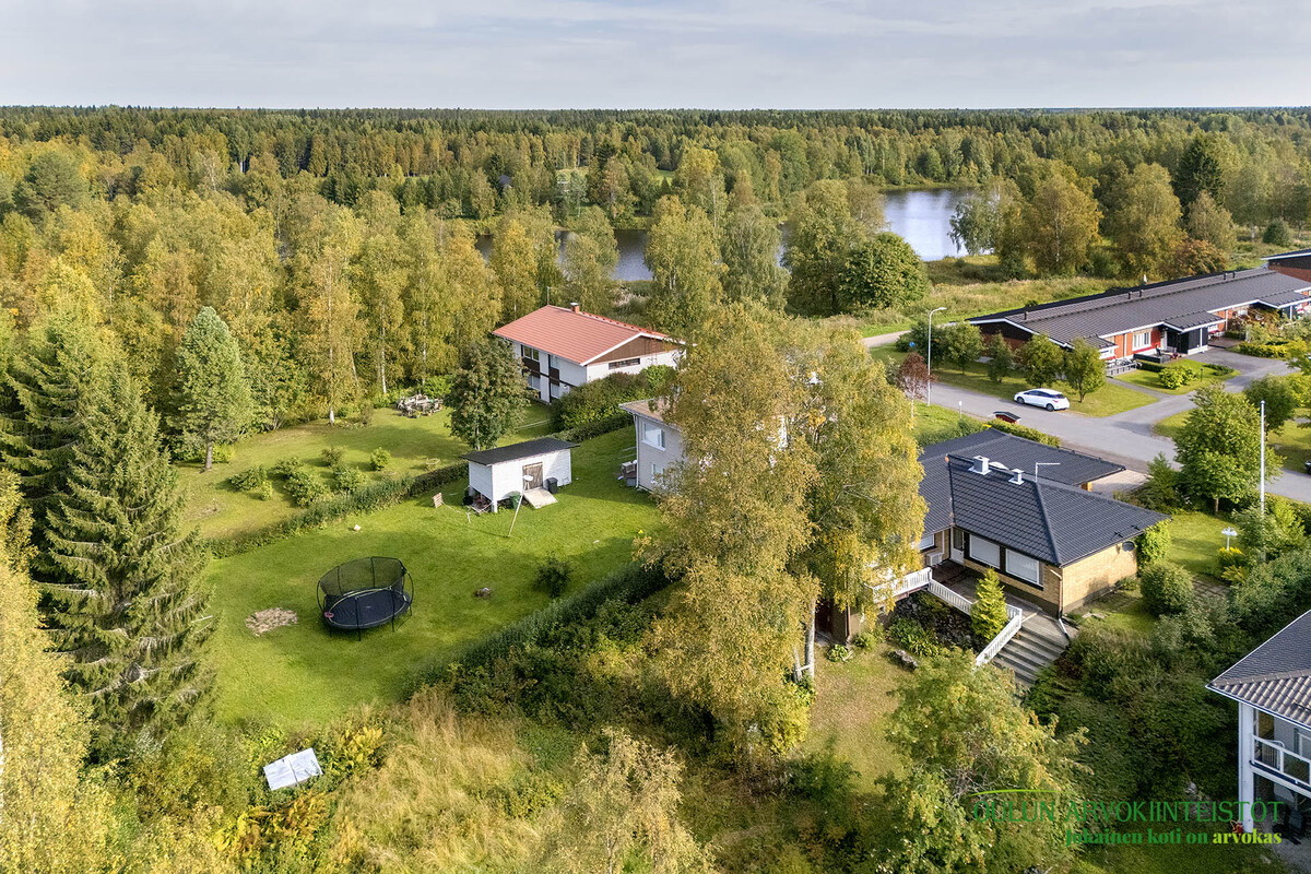 Talon oma, noin 1000 m² kokoinen rinnetontti rajoittuu puistoalueeseen ja tarjoaa vehreän ympäristön, jossa on runsaasti istutuksia, kivetyksiä ja tilaa oleskeluun. Pihapiiristä löytyy lisäksi autokatos sekä autotalli, joka sopii hyvin varastoksi tai harrastetilaksi.
