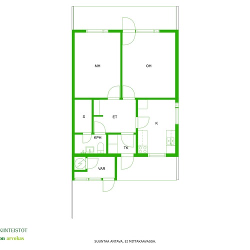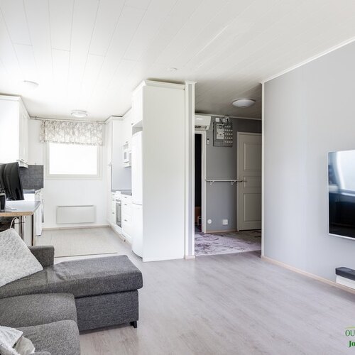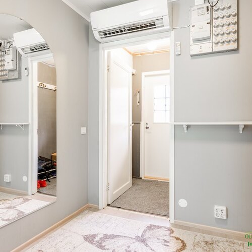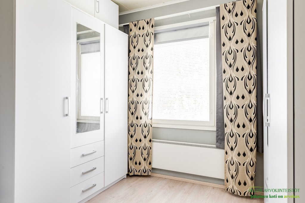 Varusteet: sälekaihtimet/rullaverhot, irralliset kaapit, kiinteät valaisimet, lämminvesivaraaja, ilmalämpöpumppu