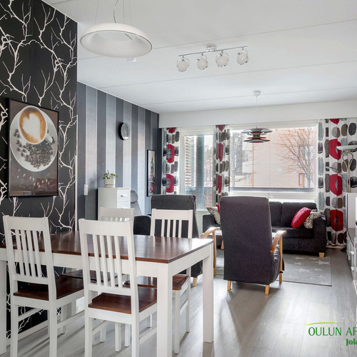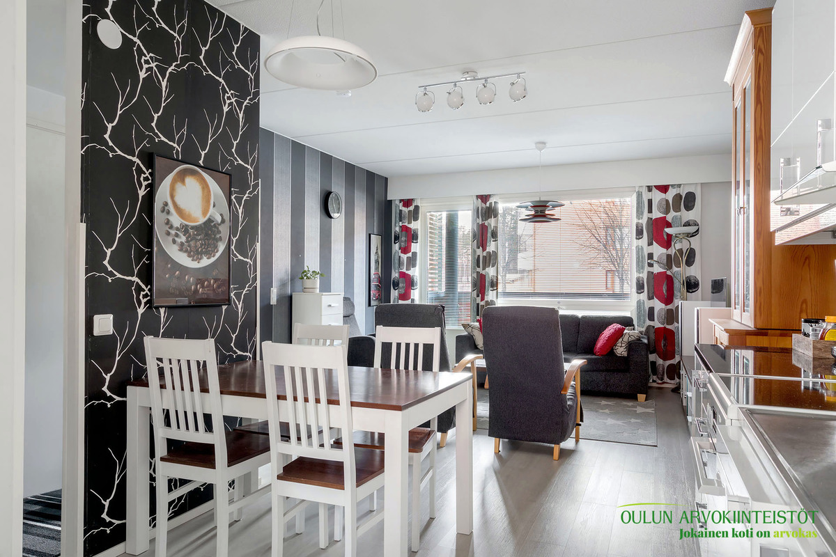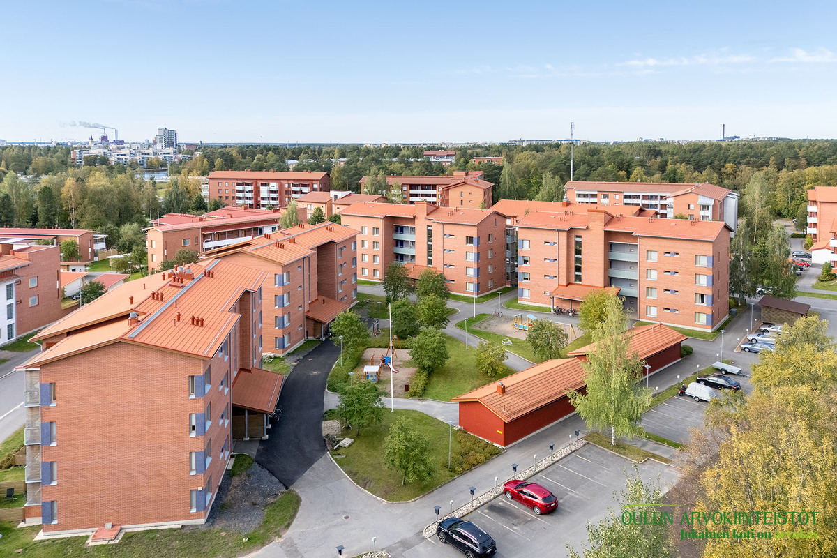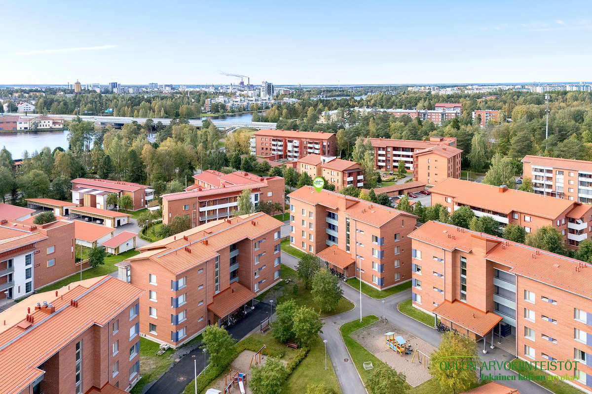 Sijainti on loistava! Kauniit ulkoilureitit jokimaisemissa alkavat lähes kotiovelta, ja alueen hyvät kulkuyhteydet takaavat sujuvan liikkumisen niin keskustaan kuin muualle Ouluun.