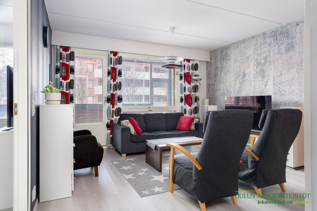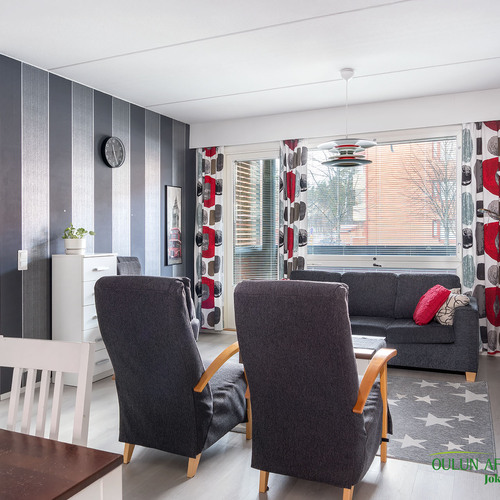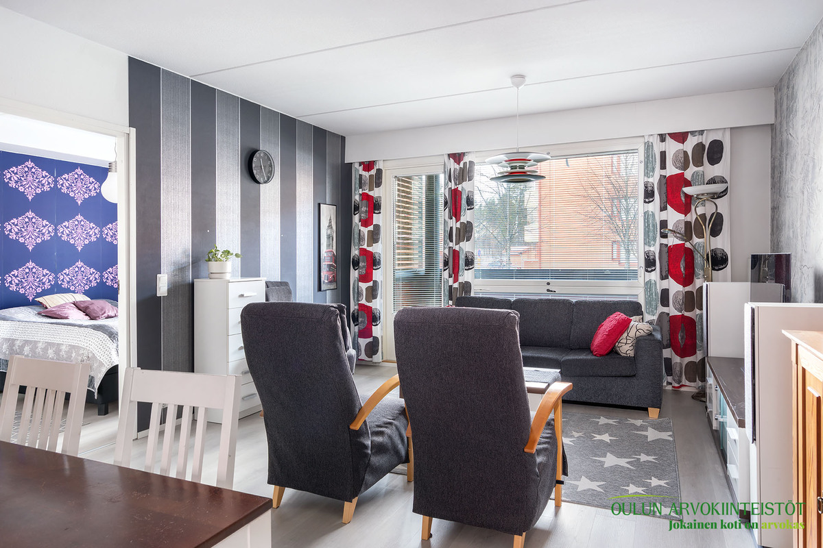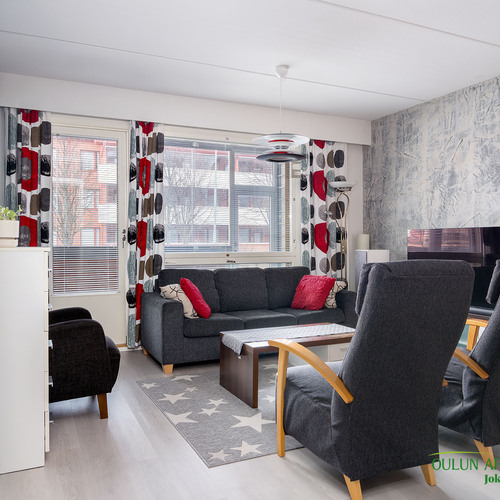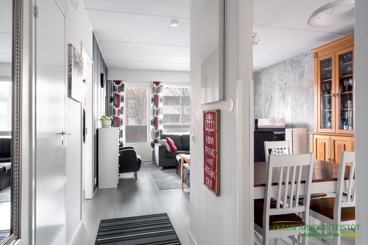 Sijainti on loistava! Kauniit ulkoilureitit jokimaisemissa alkavat lähes kotiovelta, ja alueen hyvät kulkuyhteydet takaavat sujuvan liikkumisen niin keskustaan kuin muualle Ouluun.