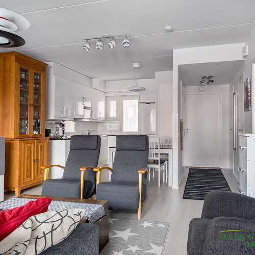 Asunnon toimiva pohjaratkaisu tekee tiloista avarat ja helposti sisustettavat. Lattiat on uusittu laadukkaaseen ja miellyttävään vinyylilaminaattiin, joka tuo kotiin tyylikkyyttä ja lämpöä. Oma sauna tuo arkeen ripauksen luksusta, ja kaukolämpö takaa huolettoman asumisen.