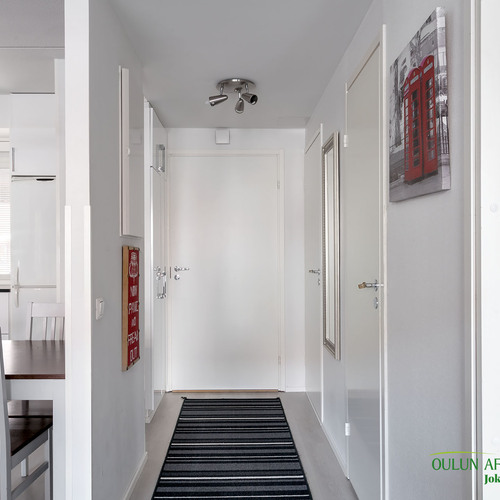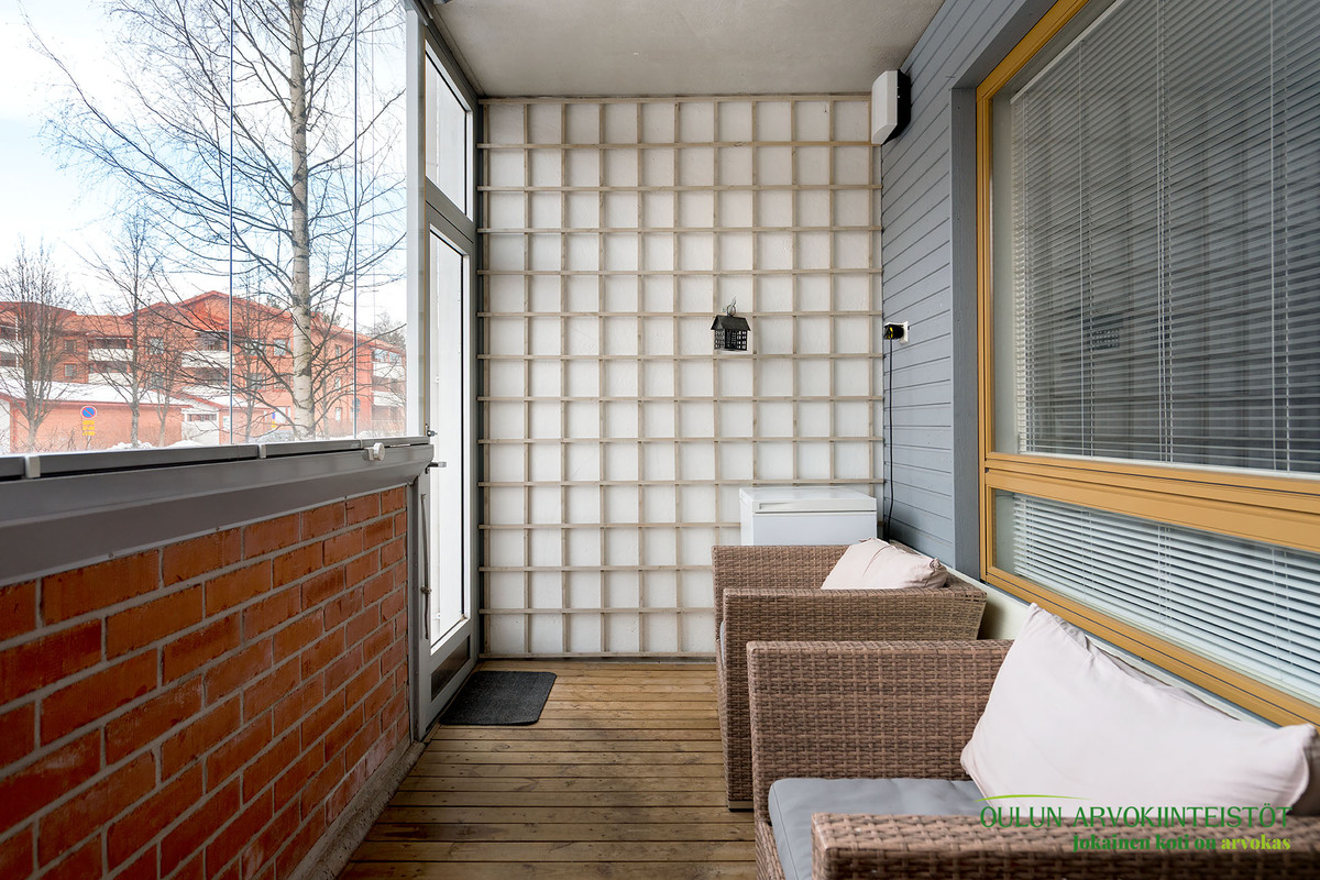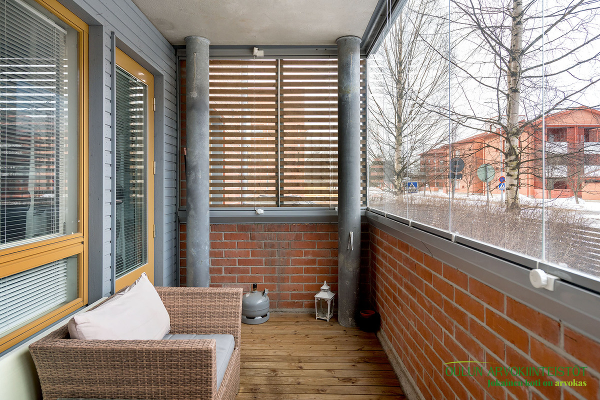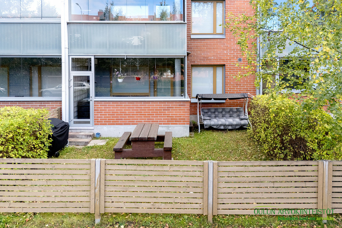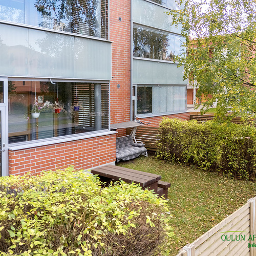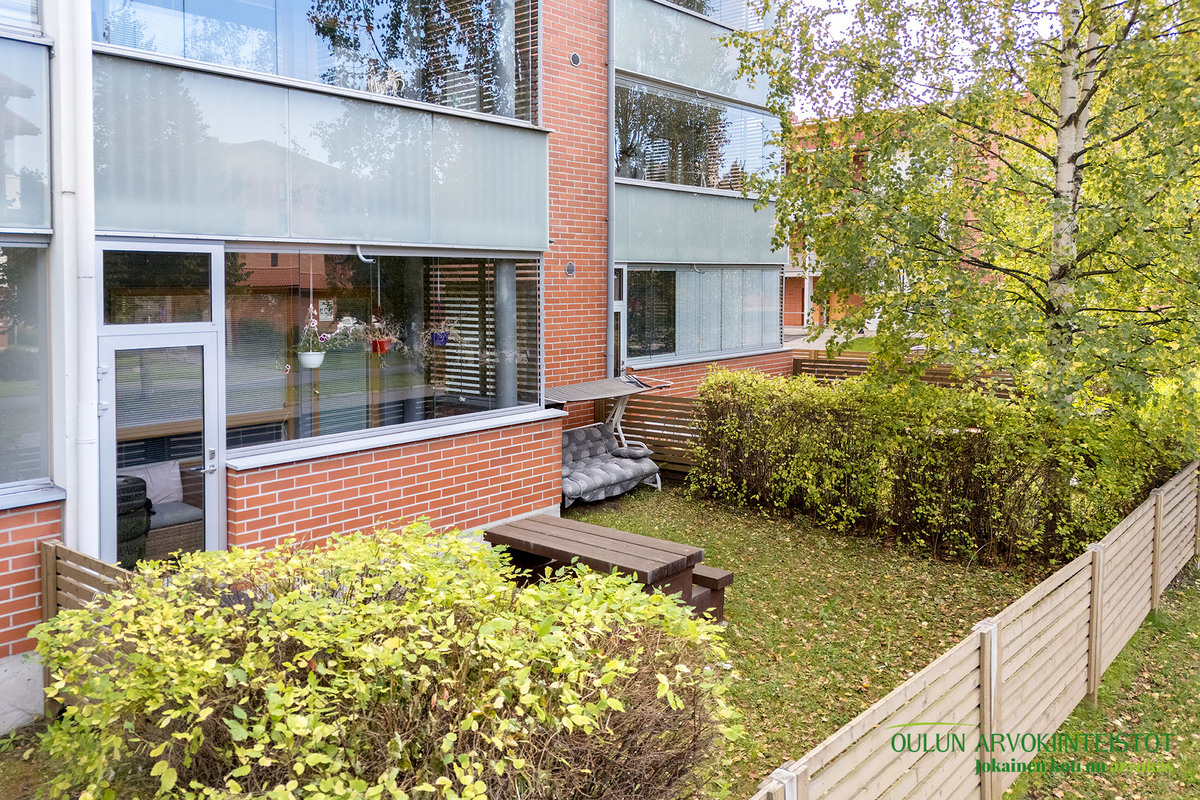 Tervetuloa tutustumaan tähän valoisaan ja hyvin pidettyyn kaksioon, joka tarjoaa kodikasta asumista luonnonläheisessä ympäristössä Oulunjoen tuntumassa. Tämä vuonna 2007 rakennettu koti sijaitsee ensimmäisessä kerroksessa ja tarjoaa harvinaista herkkua – omassa käytössä olevan piha-alueen ja lasitetun terassin, jossa voi nauttia ulkoilmasta aikaisesta keväästä myöhäiseen syksyyn.