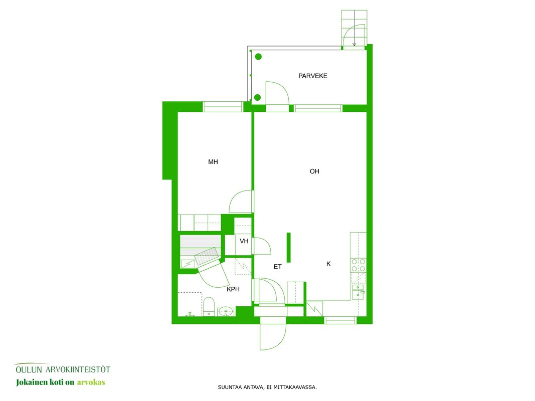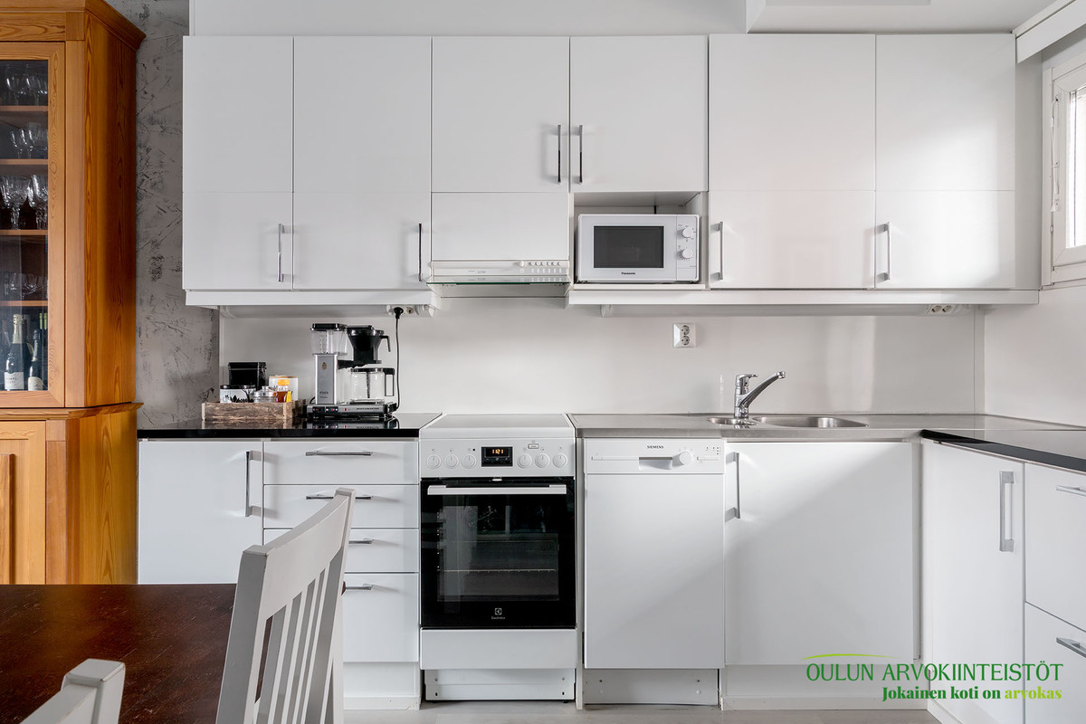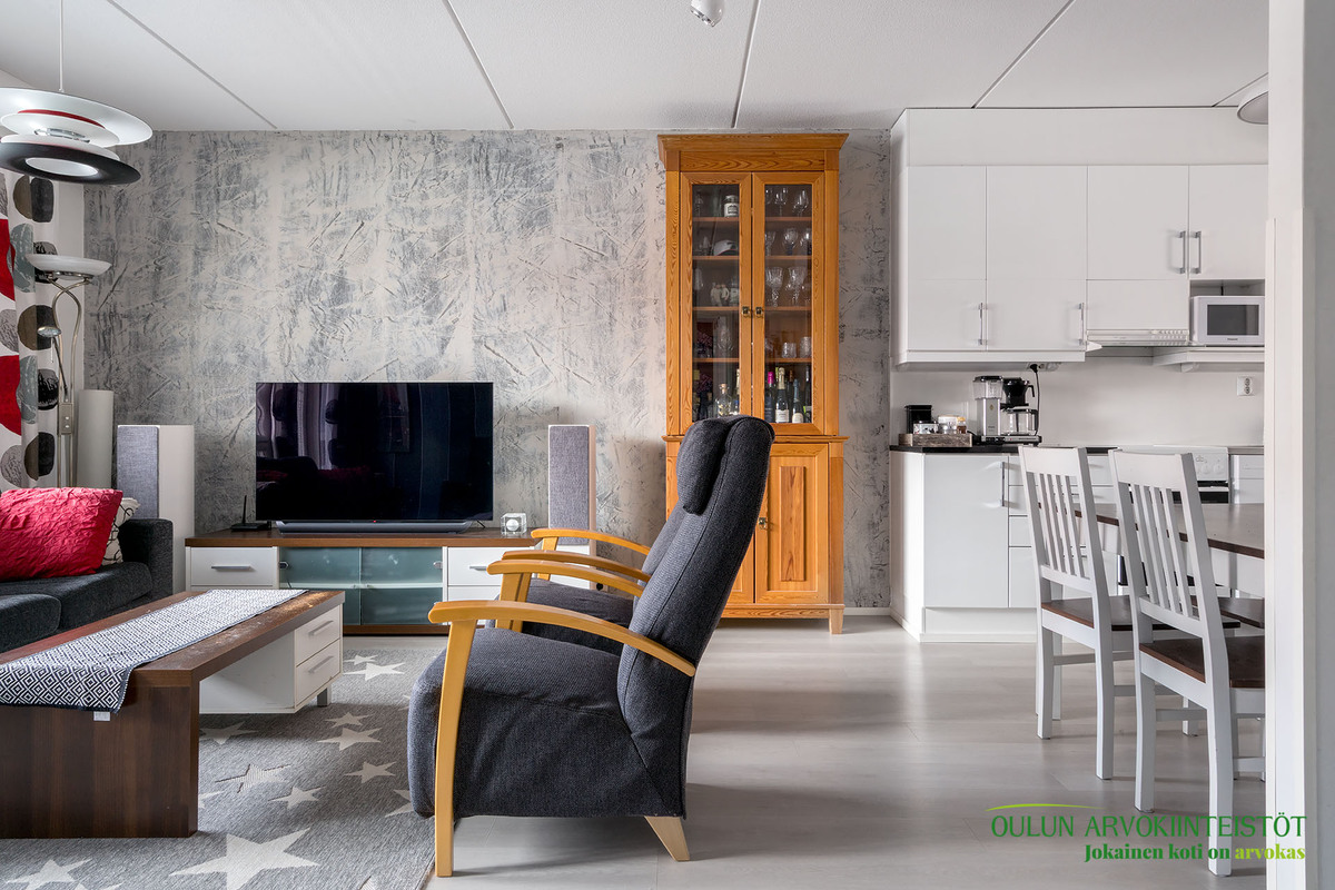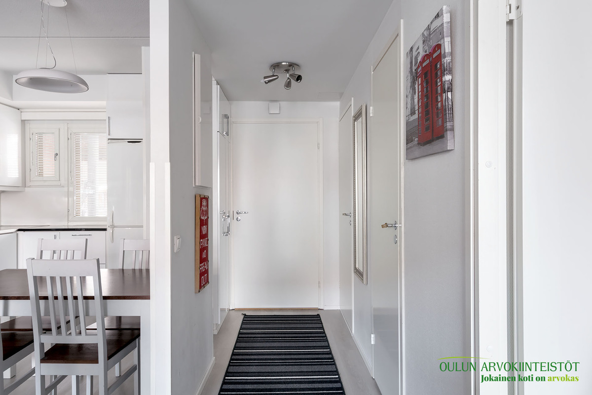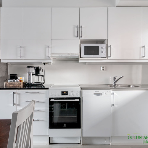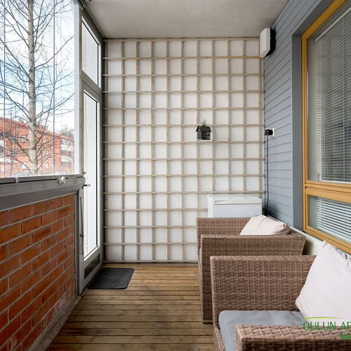 Tervetuloa tutustumaan tähän valoisaan ja hyvin pidettyyn kaksioon, joka tarjoaa kodikasta asumista luonnonläheisessä ympäristössä Oulunjoen tuntumassa. Tämä vuonna 2007 rakennettu koti sijaitsee ensimmäisessä kerroksessa ja tarjoaa harvinaista herkkua – omassa käytössä olevan piha-alueen ja lasitetun terassin, jossa voi nauttia ulkoilmasta aikaisesta keväästä myöhäiseen syksyyn.