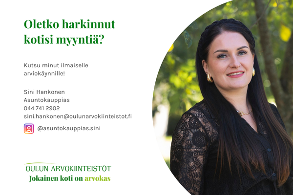 Sini Hankonen | Asuntokauppias | 044 741 2902 | sini.hankonen@oulunarvokiinteistot.fi
