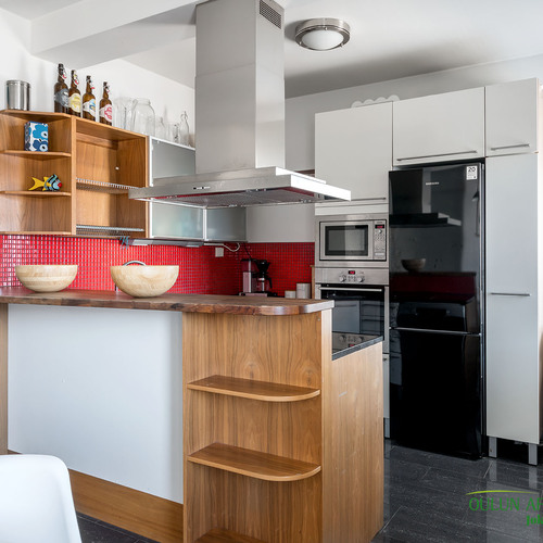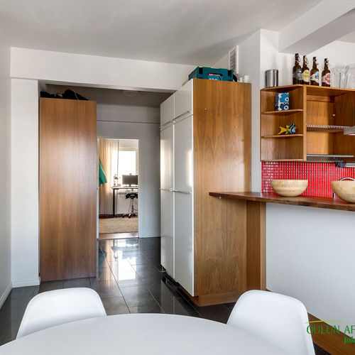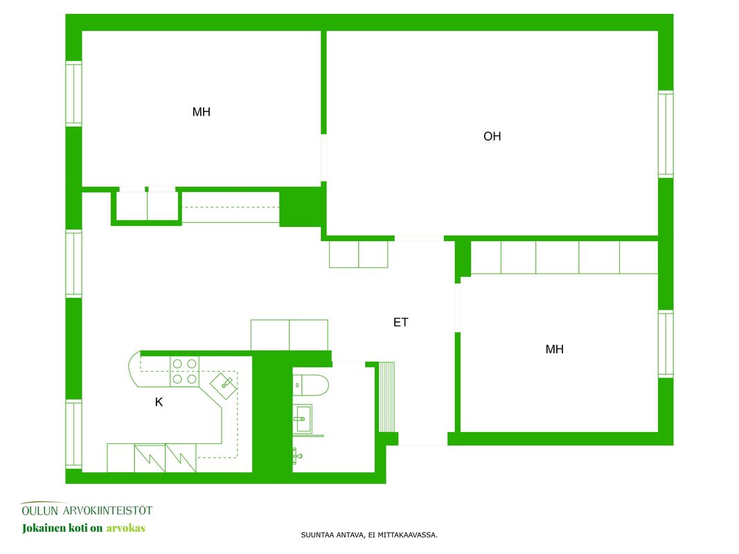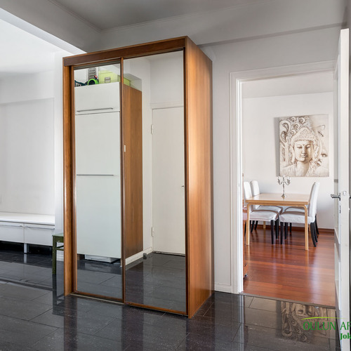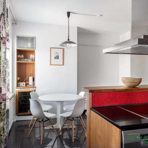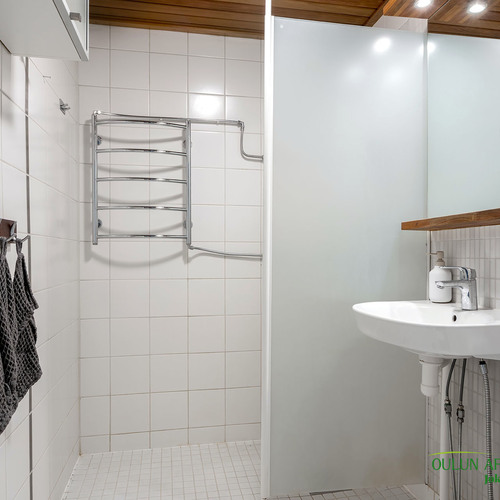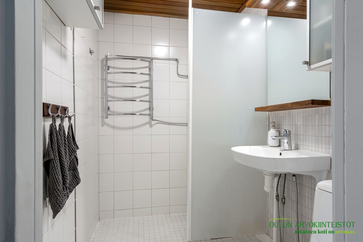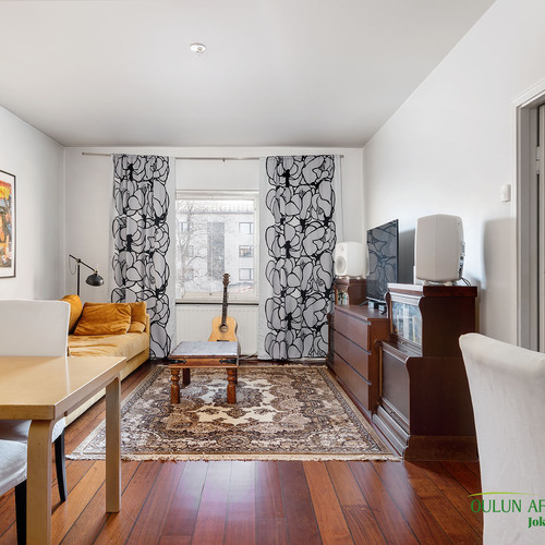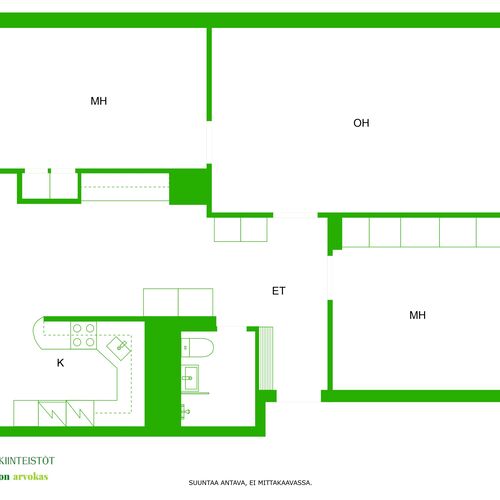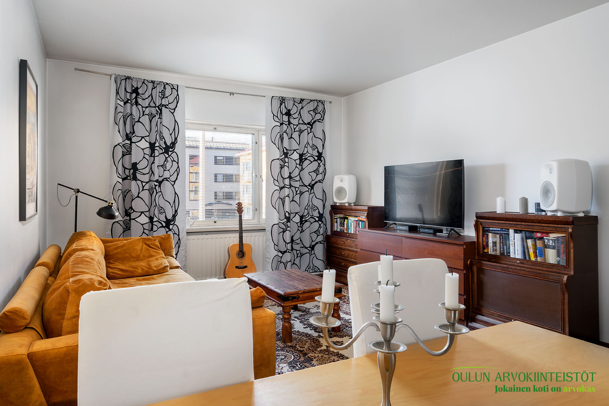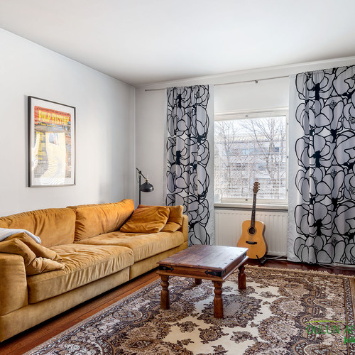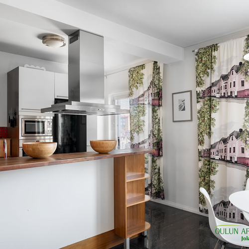 Tämän kodin avaraan eteisaulaan astuttaessa katse kiinnittyy kauniiseen, käytännölliseen sekä kulutusta kestävään laattalattiaan, joka johtaa keittiöön saakka. Luonnonvalo tulvii läpitalon huoneistoon, korostaen kauniisti talon historiaa kunnioittavaa, upeasti käsiteltyä parkettilattiaa. Huoneet huokuvat tilan tuntua ja harmonista rauhaa, sillä neutraalit ja luonnonläheiset sävyt luovat ajattoman tunnelman. Tämä levollinen värimaailma saa rohkean ja piristävän säväyksen keittiön punaisesta välitilalaatasta. Keittiön avaran tilan ansiosta se kutsuu viihtymään. Seurustelu ja kokkailu soljuvat täällä vaivattomasti. Tämä on koti, jossa elämä tuntuu ja maistuu hyvältä.