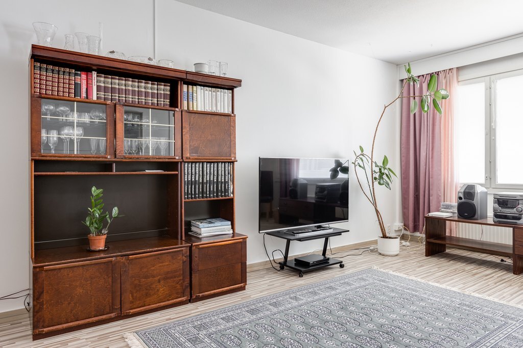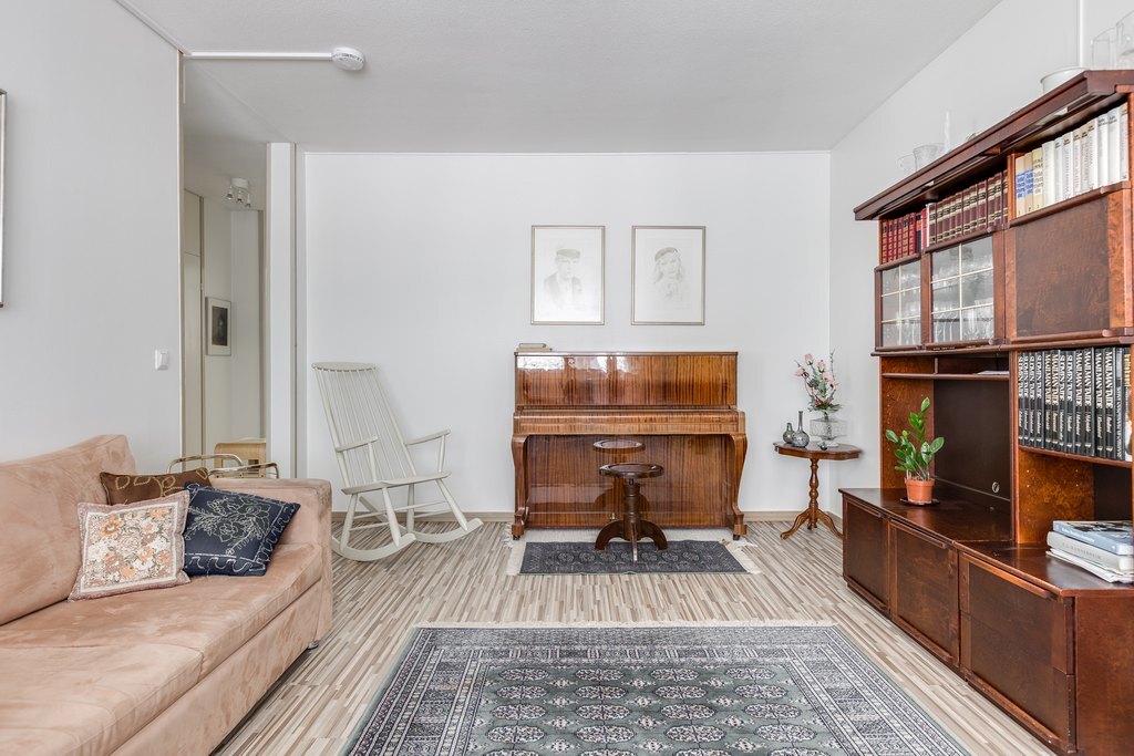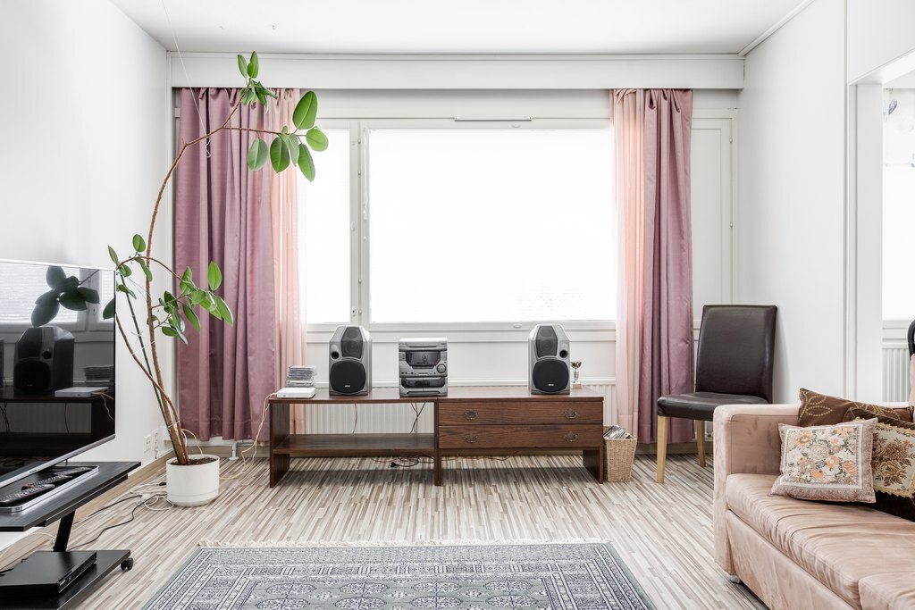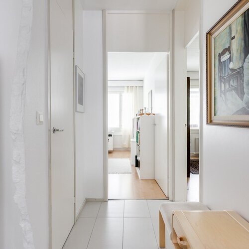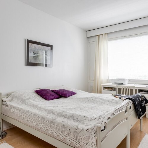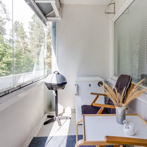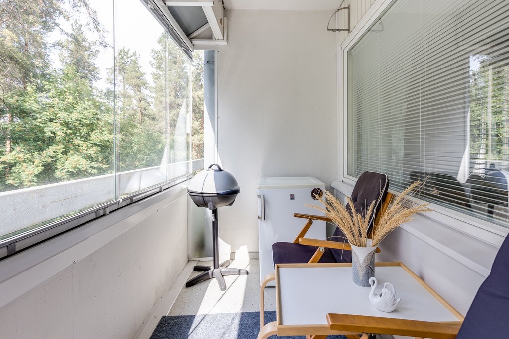 Valoisuus ja avaruus ovat tämän huoneiston valttikortteja. Suuret ikkunat päästävät luonnonvalon tulvimaan sisään, mikä luo huoneistoon avoimen ja raikkaan ilmapiirin. Lisäksi asunnossa on tilava lasitettu parveke, jossa voit nauttia rauhallisista hetkistä ja kauniista maisemista ympäri vuoden.