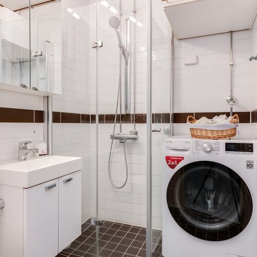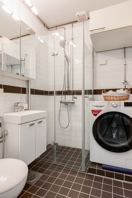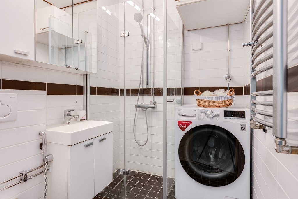 Kylpyhuone on remontoitu ja tarjoaa kaikki tarvittavat mukavuudet.