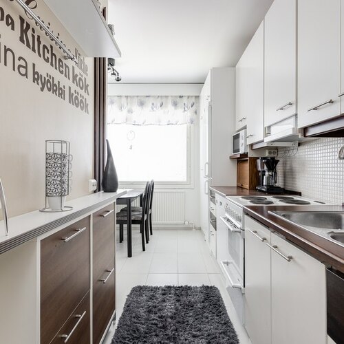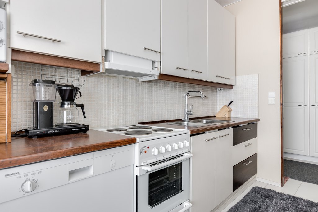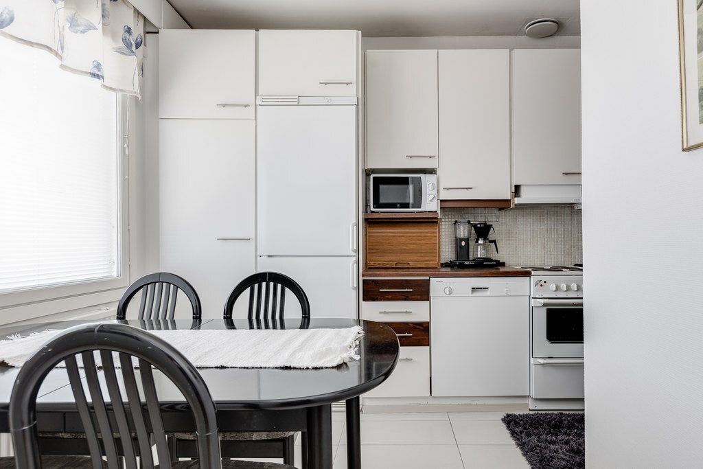 Astuessasi sisään huomaat välittömästi tämän asunnon tilavuuden ja remontoidun ilmeen. Huoneisto sijaitsee kolmannessa kerroksessa ja tarjoaa runsaasti tilaa koko perheelle. Tilava keittiö on täysin remontoitu ja siinä on runsaasti kaappi- ja laskutilaa. Ruokapöydällekin on runsaasti tilaa, joten ruokailuhetket ovat viihtyisiä ja mukavia.
