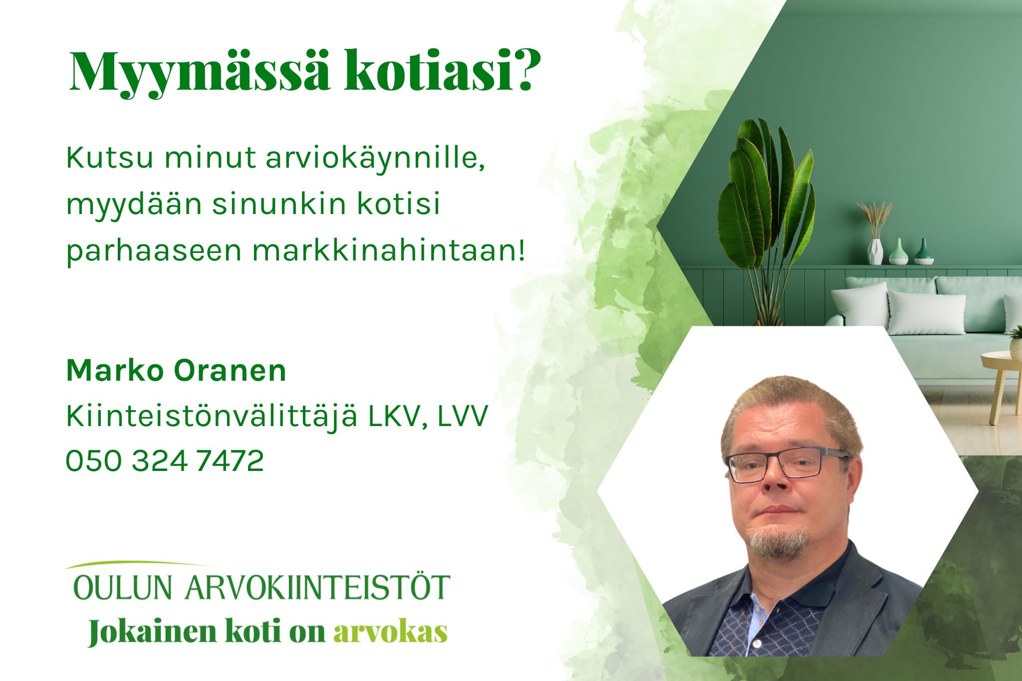 Autan sinua mielelläni myös oman kotisi myynnissä. Soita ja varaa maksuton arviokäynti – keskustellaan, miten voimme toteuttaa onnistuneet kaupat yhdessä!