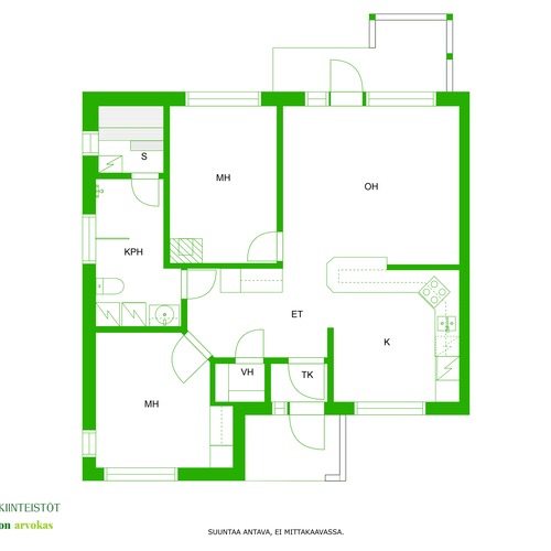 Varusteet: liesituuletin, mikroaaltouuni, astianpesukone, kiinteät valaisimet, liesituuletin / hormi