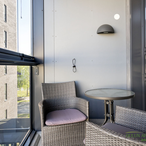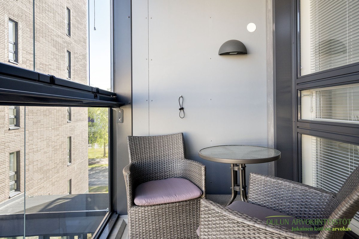 Olohuoneessa on kaksi selkeää seinää, joiden ansiosta huonekalujen sijoittelu on vaivatonta. Tämä mahdollistaa huonekalujen luovan järjestelyn ja luo tilaan kodikkuutta. Alkovi on sijoitettu järkevästi erilleen olohuoneesta. Kivan kokoiselta lasitetulta parvekkeelta on näkymät sisäpihalle.