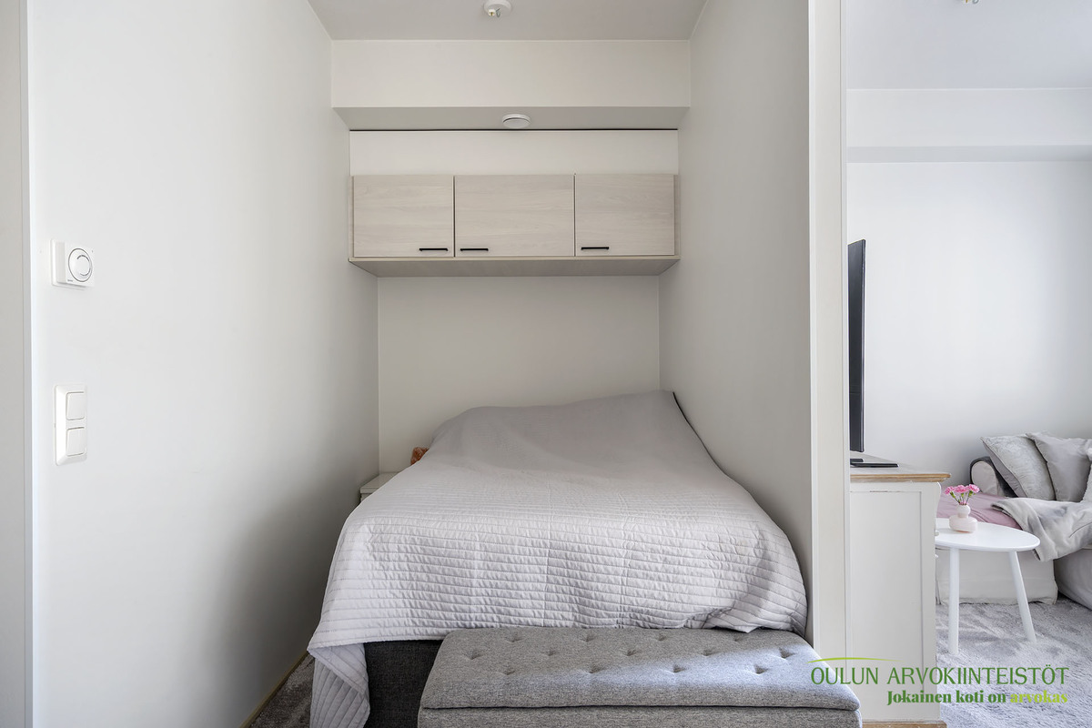 Tämä neljännen kerroksen huoneisto käsittää 1 h+kk,alkovi, kph ja neliöitä on 28,50 m². Taloyhtiö valmistunut 2023 joten isompia remontteja ei ole ja on kaukolämmössä jolloin asumiskustannukset jäävät pieniksi.
