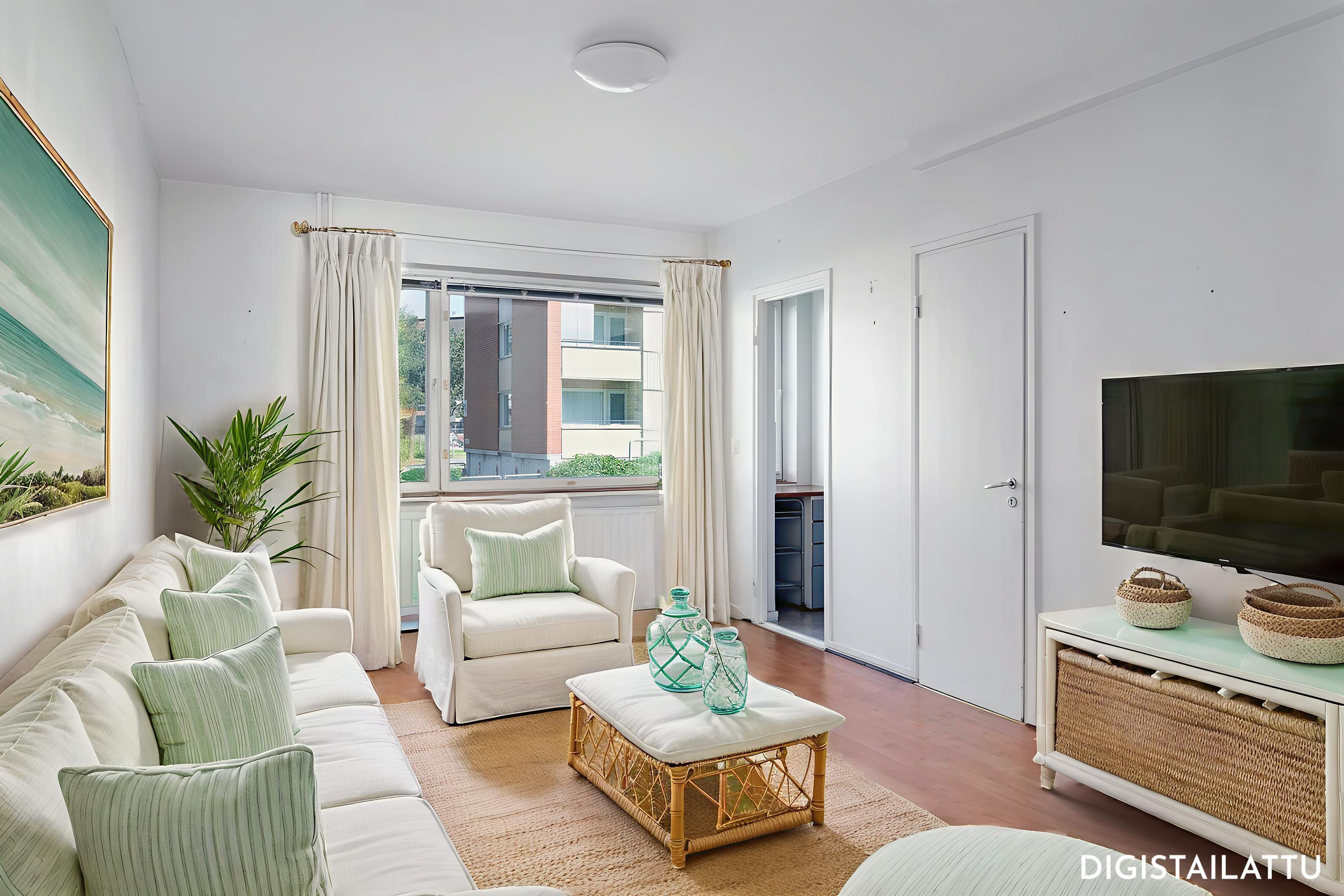 Asunnossa on toimiva pohjaratkaisu, Keittokomero on erillään oleskelutilasta, joka toimii niin olohuoneena kuin makuuhuoneenakin. Kodista löytyy myös erillään oleva vaatehuone. Taloyhtiössä on sauna ja pesutilat, sekä huoneistolle kuuluu 2 omaa erillistä varastoa. Autopaikat jonotuksen mukaan. Sijainti on erinomainen, hyvät kulkuyhteydet ja läheltä löytyvät kaikki palvelut.