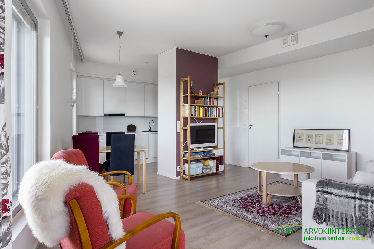 Tämä valoisa ja avara kolmio etsii nyt uutta omistajaa, joka arvostaa modernia ja laadukasta asumista. Erinomainen pohjaratkaisu tekee asumisesta sujuvaa, ja asunnon suuret ikkunat päästävät luonnonvalon kauniisti sisään. Huoneiston kruunaa tilava lasitettu kulmaparveke, josta avautuu näkymät vesistön suuntaan! Oma sauna tuo arkeen ripauksen luksusta tarjoten samalla paikan rentoutua päivän päätteeksi. Ilmava huonekorkeus ja fiksusti hyödynnetyt neliöt tekevät tästä kodista avaran ja kodikkaan kokonaisuuden.