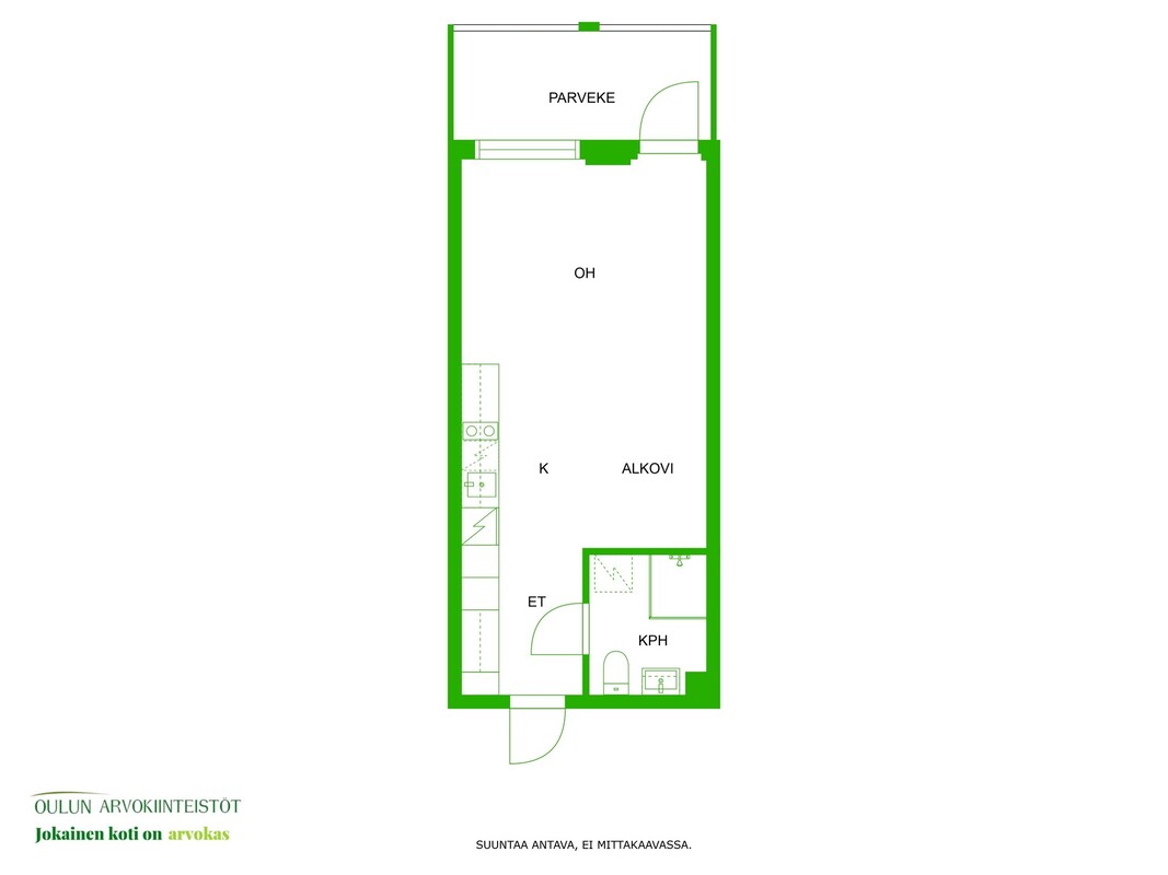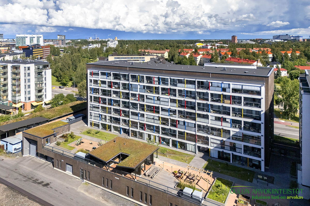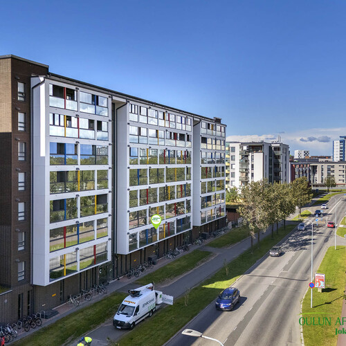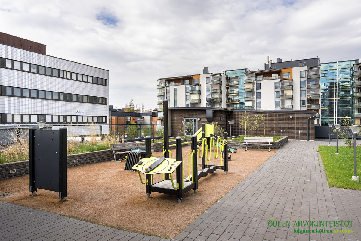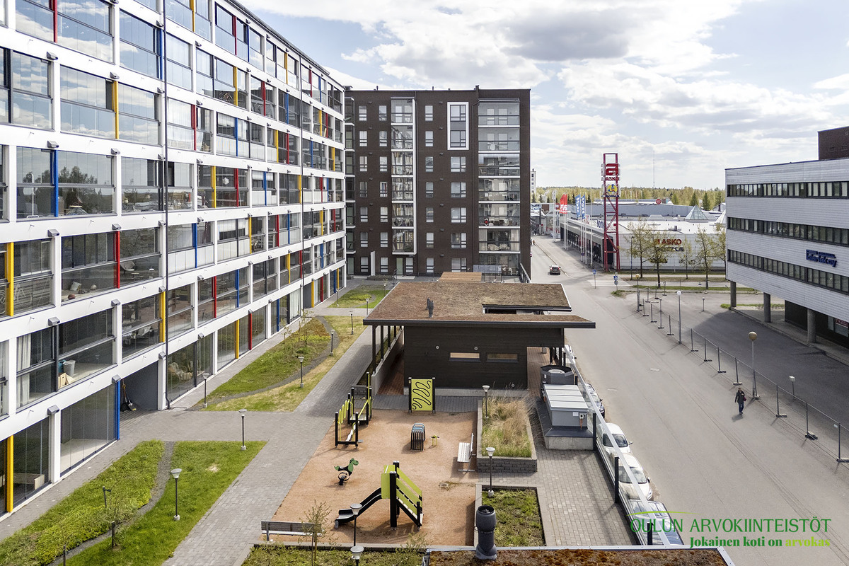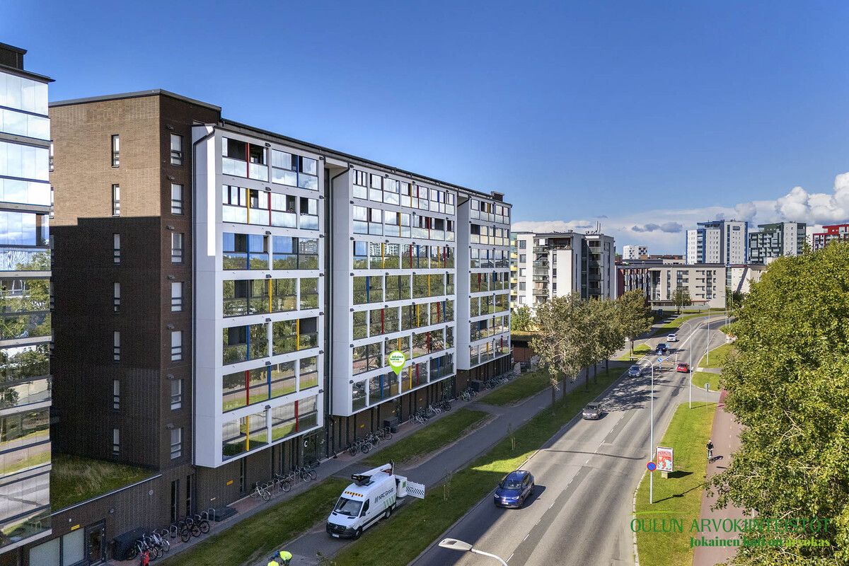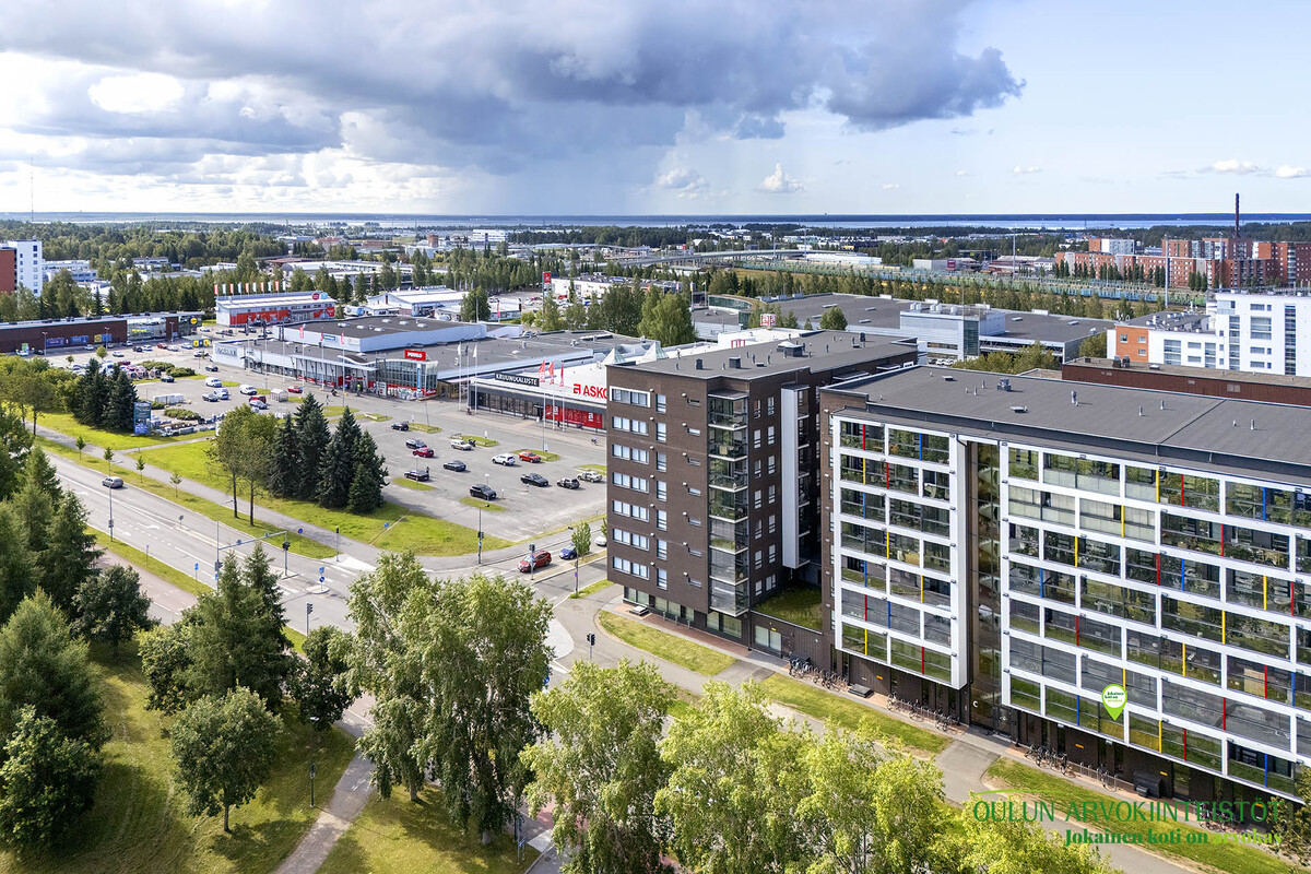 Sijainti on erinomainen: Oulun keskustan monipuoliset palvelut, ravintolat ja kaupat ovat vain kivenheiton päässä. Rautatieasemalle kävelet muutamassa minuutissa, ja kulkuyhteydet toimivat hyvin. Halutessasi on kuitenkin mahdollista ostaa autohallipaikka erillisenä osakkeena. Rauhallinen ympäristö, lähellä sijaitsevat kaupat sekä vastapäätä oleva Madetojan sali tekevät tästä sijainnista houkuttelevan.