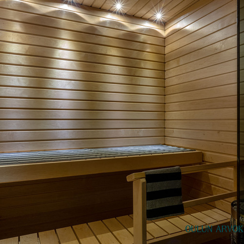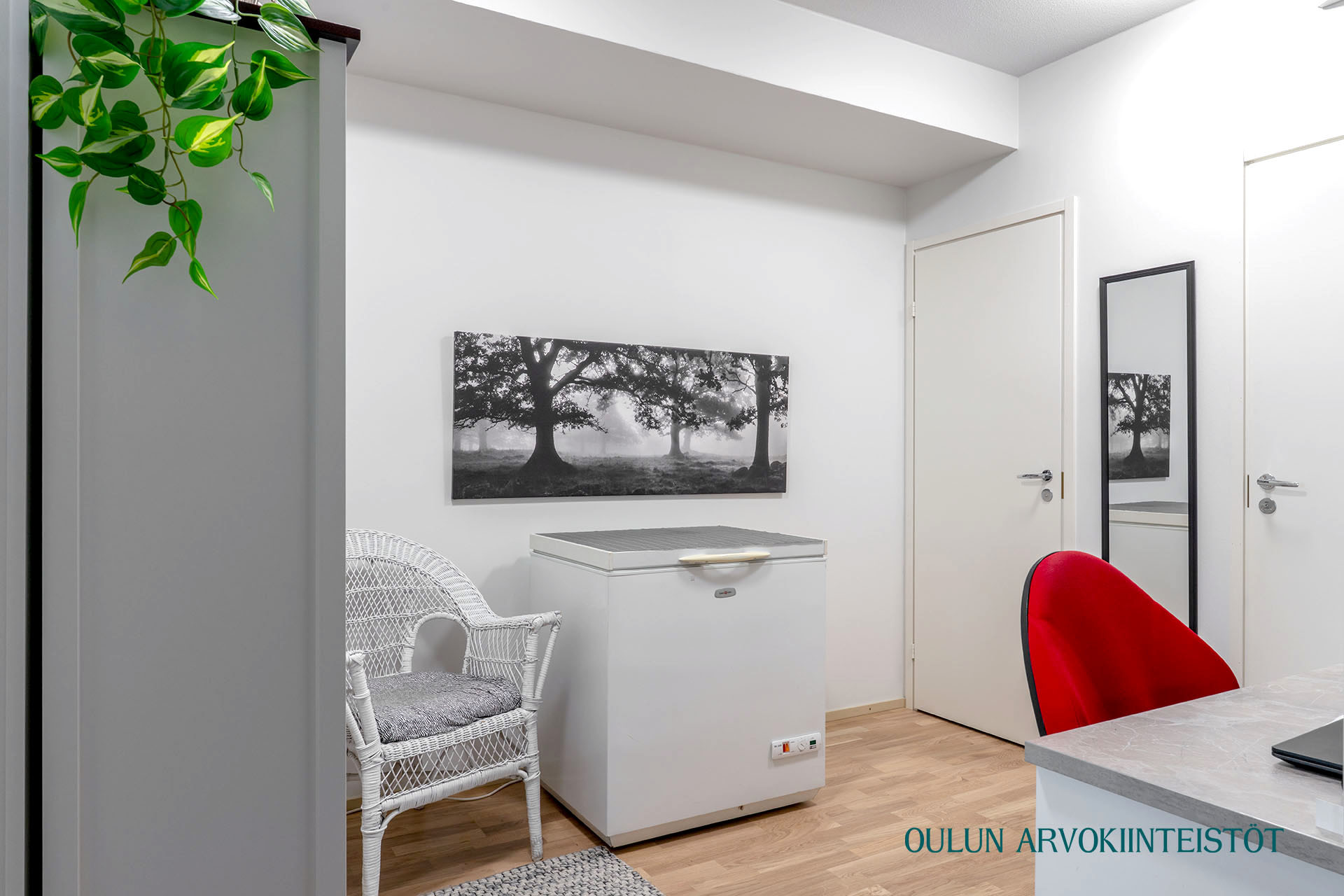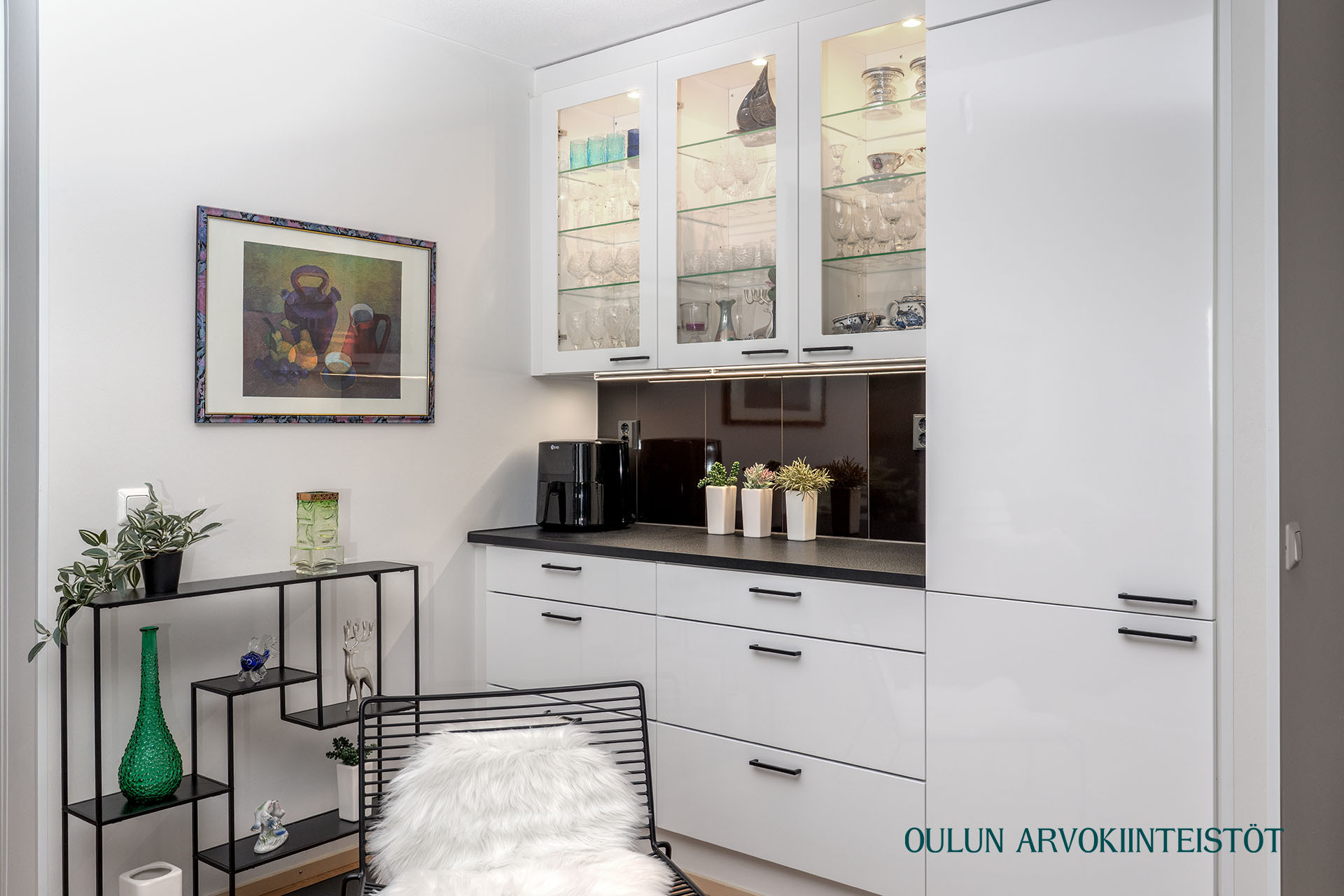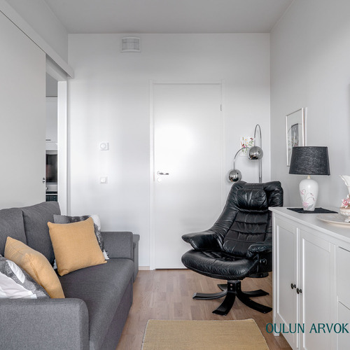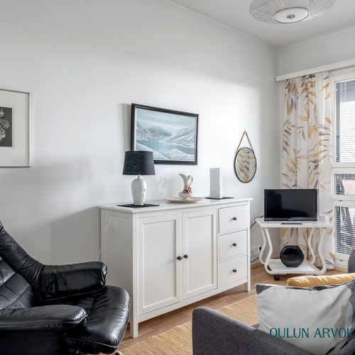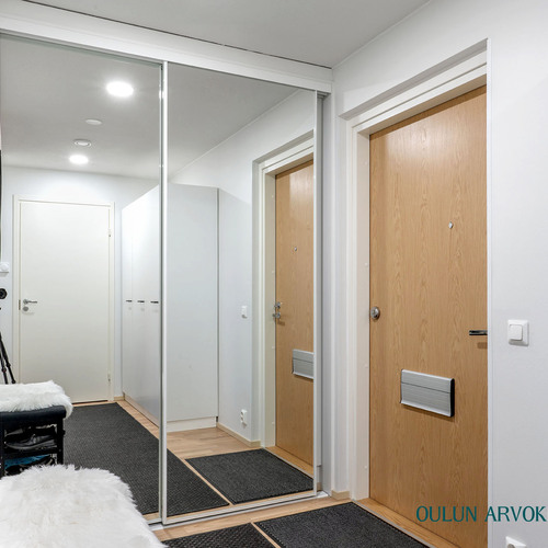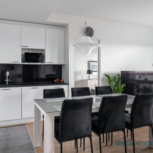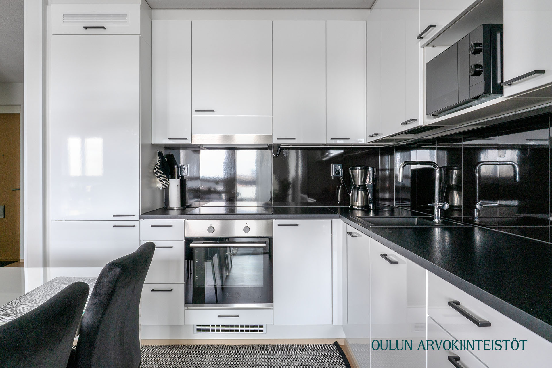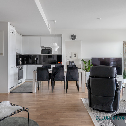 Asunnon 90,50 neliötä muodostuvat kahden huoneiston yhdistelmästä, jonka ansiosta tilaratkaisut ovat tavallista väljemmät ja toimivammat. Seitsemännen kerroksen koti on kauttaaltaan moderni ja tyylikkäästi viimeistelty. Asunto on pidetty erittäin hyvässä kunnossa ja siihen on asennettu 2 ilmalämpöpumppua lisäämään asumismukavuutta. Suuri lasitettu parveke avautuu Madetojan salin suuntaan ja tarjoaa runsaasti tilaa oleskelulle. Parvekkeelle on kulku sekä olohuoneesta että makuuhuoneesta. Keittiö ja olohuone muodostavat yhtenäisen ja viihtyisän kokonaisuuden, ja keittiöstä löytyy kaksi jääkaappipakastinta sekä runsaasti laskutilaa. Asunnossa on lisäksi oma sauna ja kaksi vaatehuonetta. Tontti on lunastettu omaksi.
