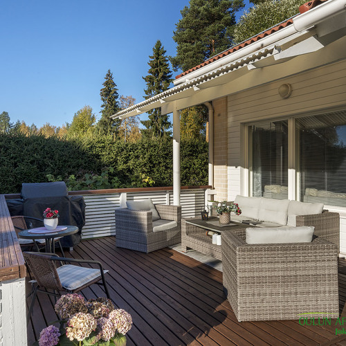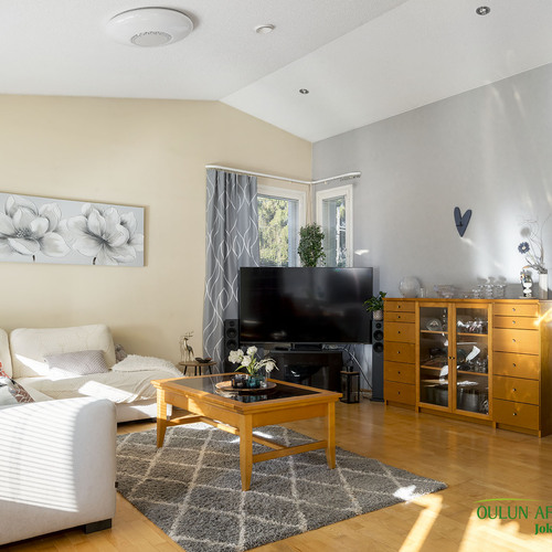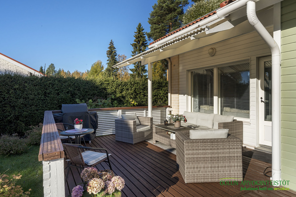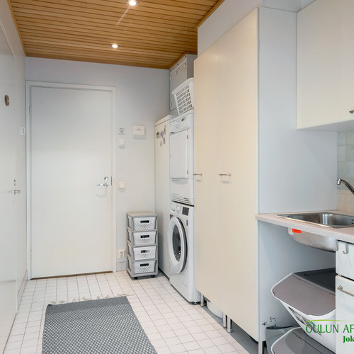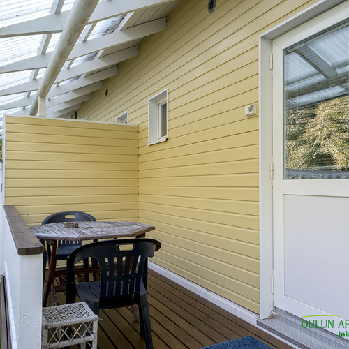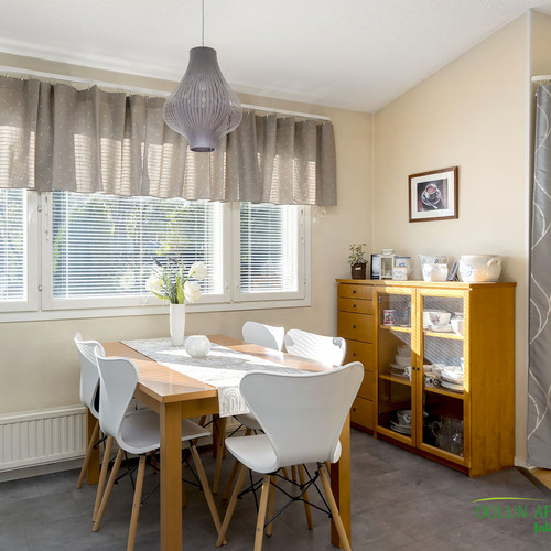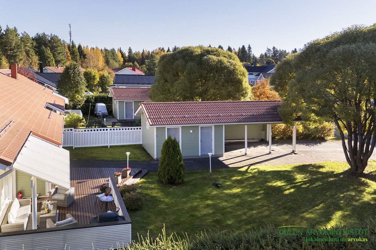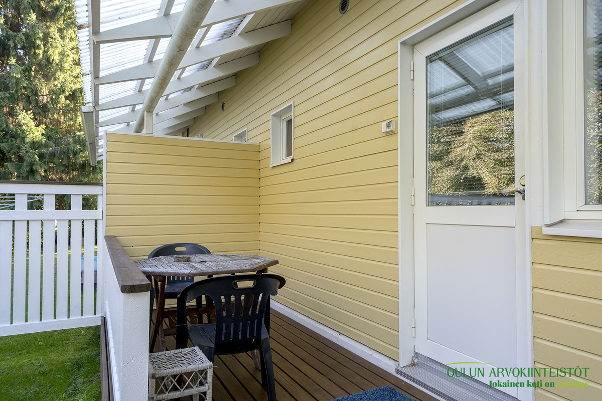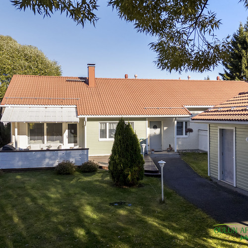 Keittiötä on uusittu ja se tarjoaa hyvät puitteet ruoanlaitosta nauttivalle. Olohuoneesta on suora yhteys laajennetulle terassille, jossa voit viettää aikaa ulkoilmassa. Kodin sauna on varustettu aina valmiilla sähkökiukaalla, ja kylpyhuoneen yhteydessä oleva kodinhoitotila lisää asumismukavuutta ja käytännöllisyyttä. Pihapiiri on suojaisa ja valoisa, tarjoten kaikin puolin viihtyisän ympäristön. Lisäksi autokatos ja sen yhteydessä oleva varasto tuovat arkeen lisätilaa ja käytännöllisyyttä.