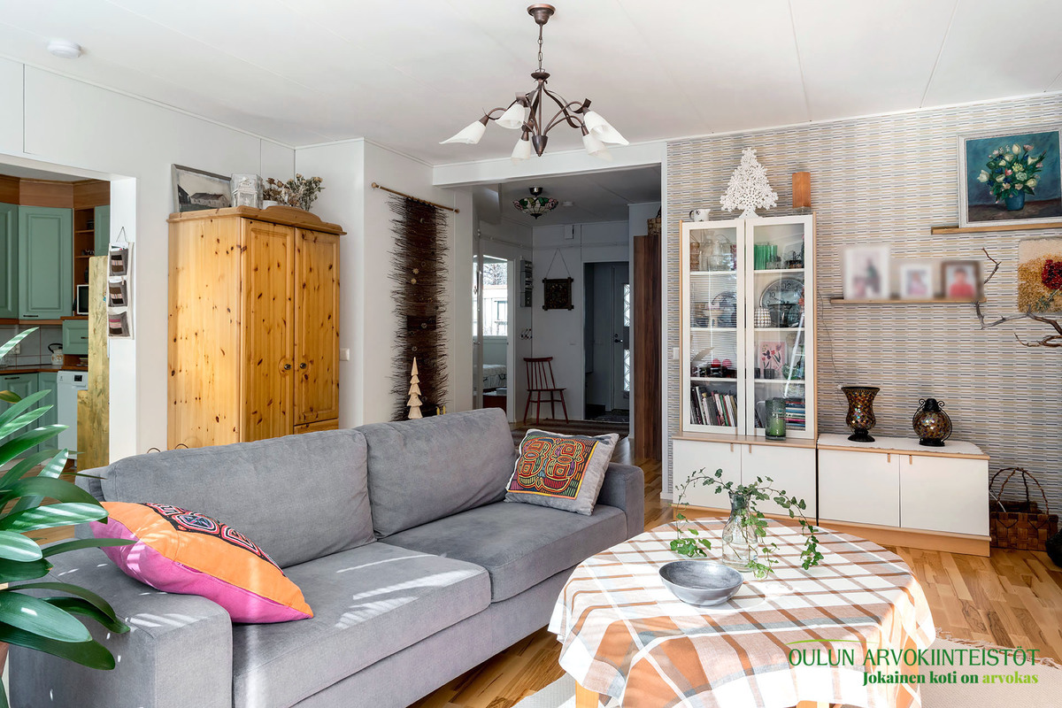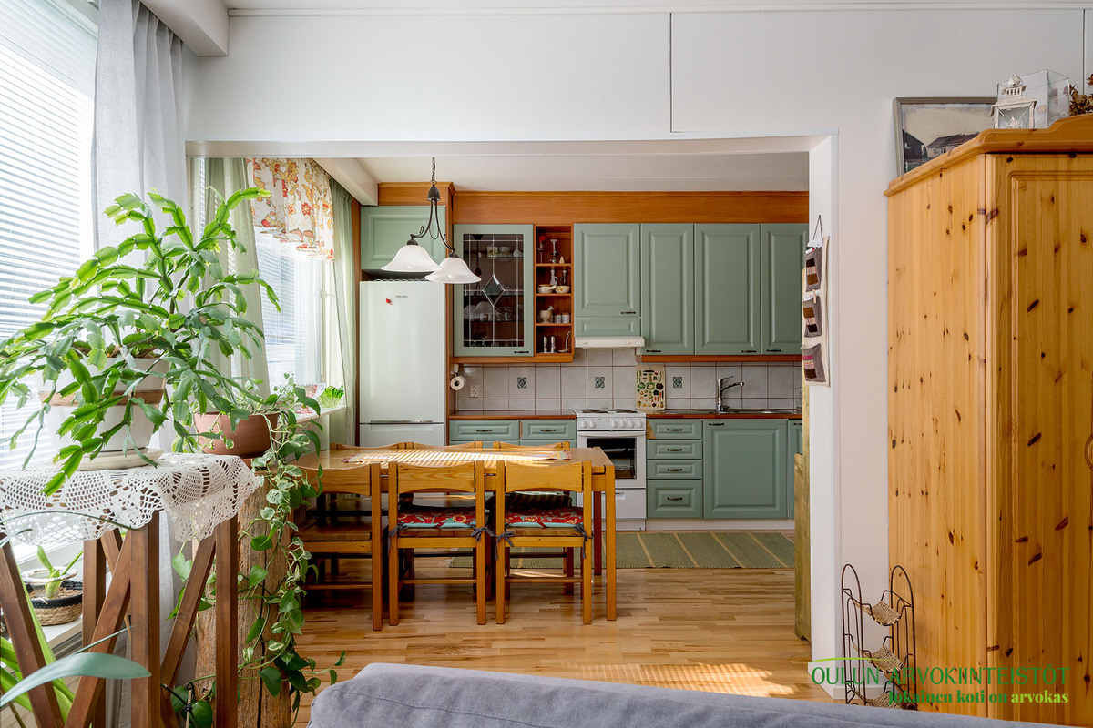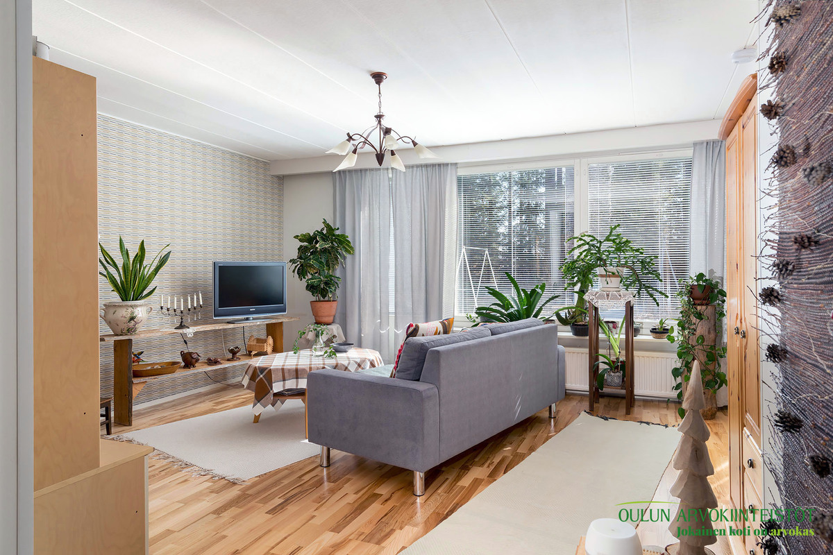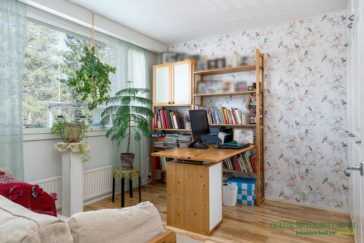 Yksi asunnon parhaista puolista on sen sijainti. Takapiha rajoittuu rauhalliseen puistoon ja lasten leikkipuisto löytyy aivan vierestä. Luonto on täällä koko ajan läsnä – Kiiminkijoki virtaa vain kivenheiton päässä, tarjoten mahdollisuuden lenkkeilyyn, kalastukseen tai kesäisiin eväsretkiin. Kiimingin monipuoliset palvelut – kaupat, koulut, päiväkodit ja kirjasto – ovat kaikki kävelymatkan päässä.