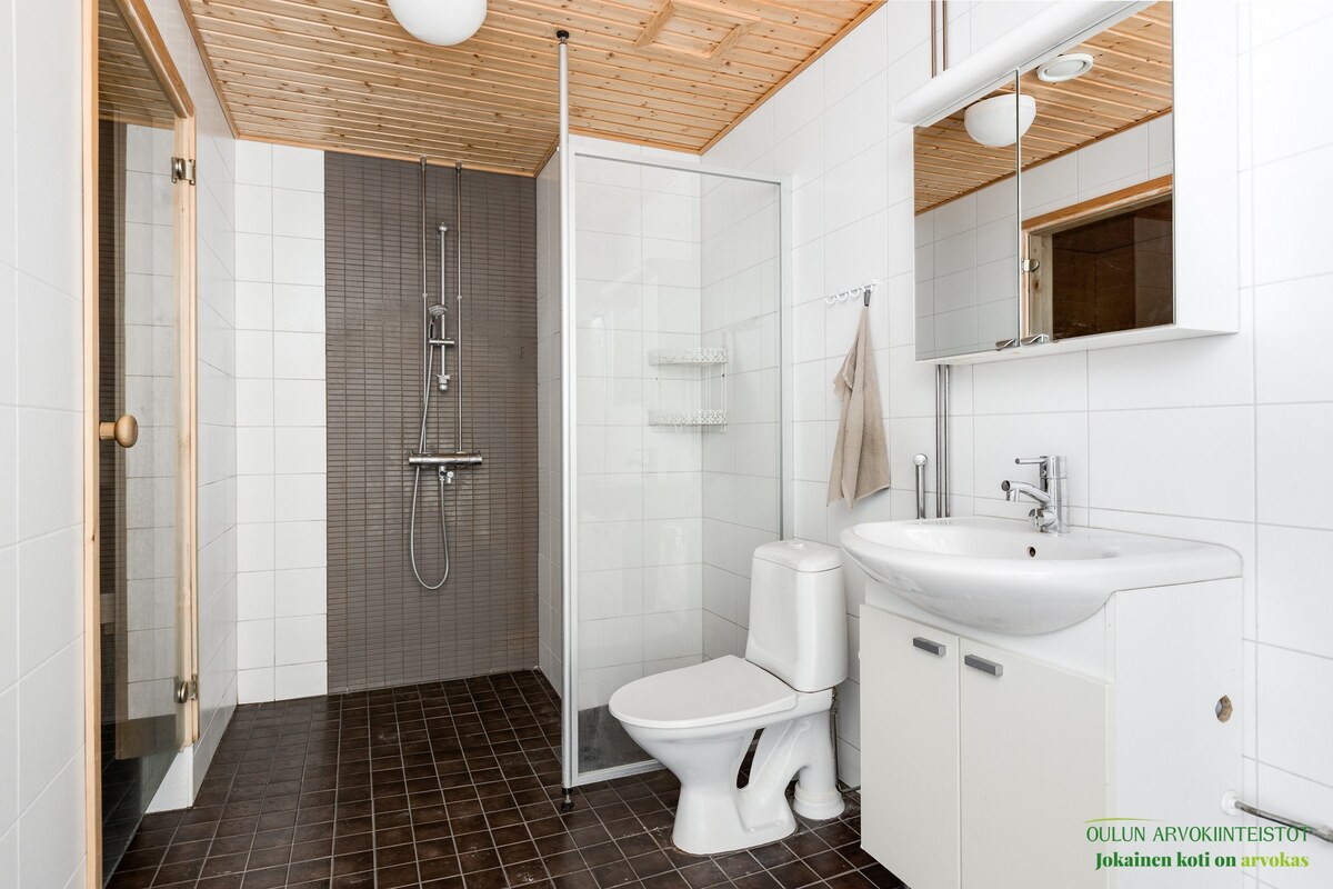 Huoneisto on avara ja valoisa. Lisämukavuutta antaa toisen makuuhuoneen erillinen wc ja toinen wc. istuin sijaitsee kylpyhuoneessa. Toisen makuuhuoneen yhteydessä vaatehuone. Omassa saunassa on mukava ottaa löylyä.