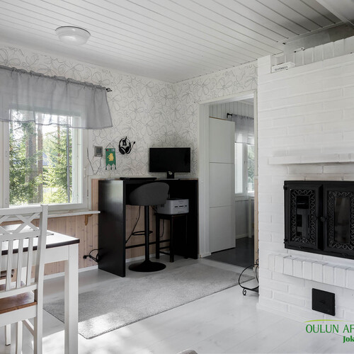 Pohjaratkaisu on toimiva ja valoisa: kaksi tilavaa makuuhuonetta, avara olohuone sekä tunnelmallinen takka/leivinuuni, joka paitsi luo lämpöä ja kodikkuutta, myös auttaa pitämään lämmityskustannukset maltillisina.