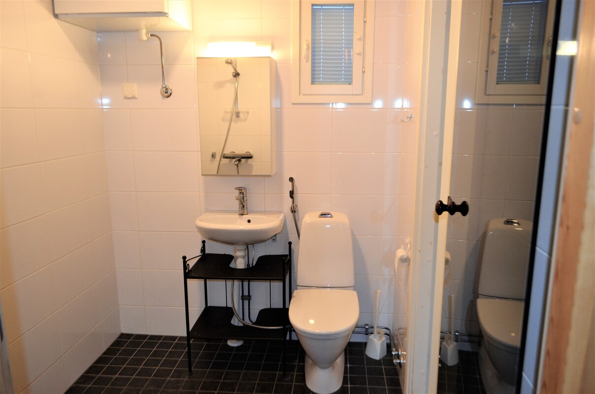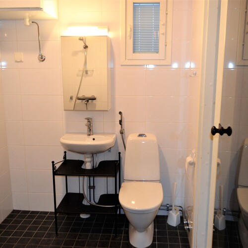Varusteet: pesukoneliitäntä, lattialämmitys, wc-istuin, suihku, peili, kiinteät valaisimet