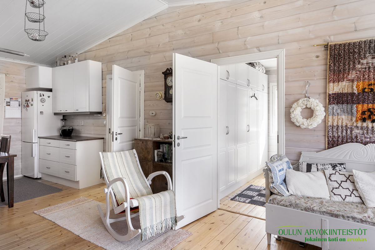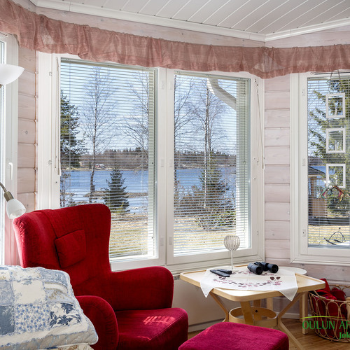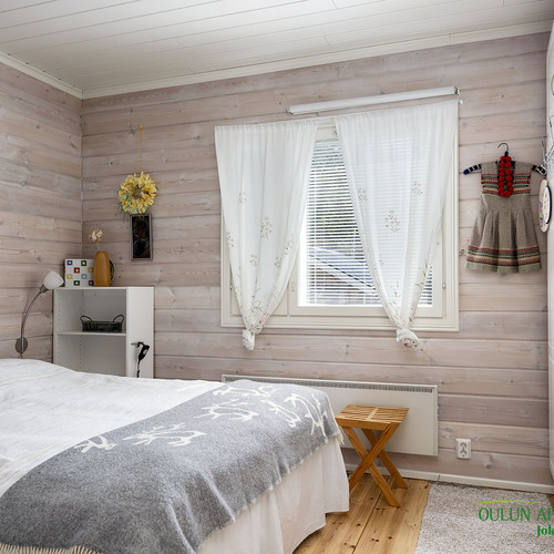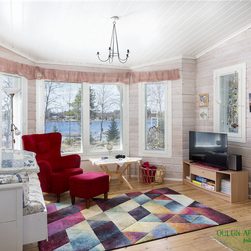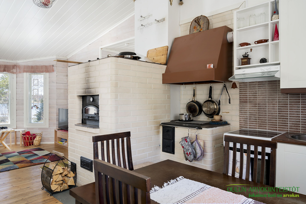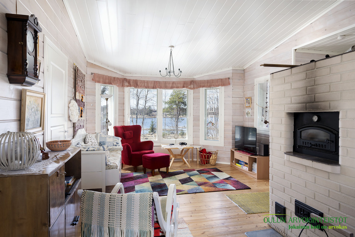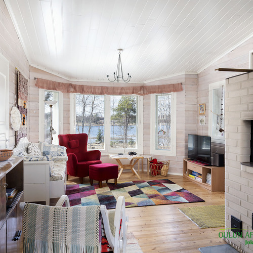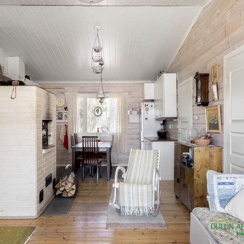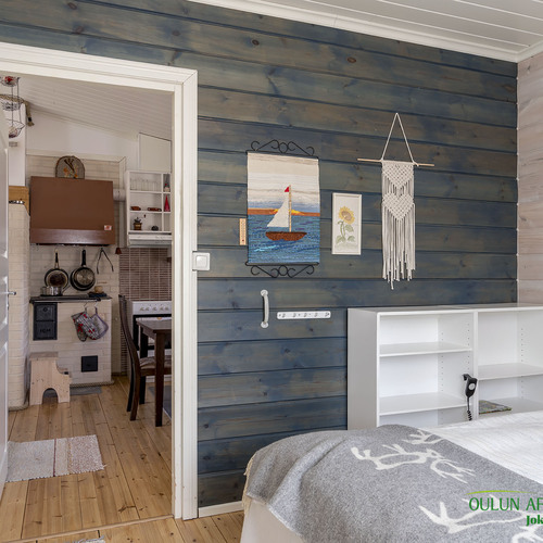 The house was built in 2010 and is located in a sheltered spot along the banks of the Ii River. Designed for year-round use, it features a functional layout and a cozy interior that make staying here pleasant in all seasons. A fireplace adds warmth and atmosphere.