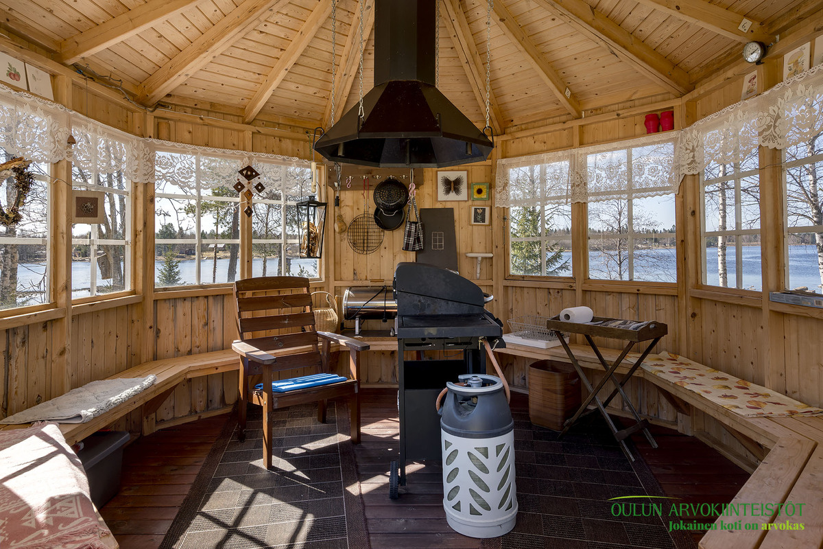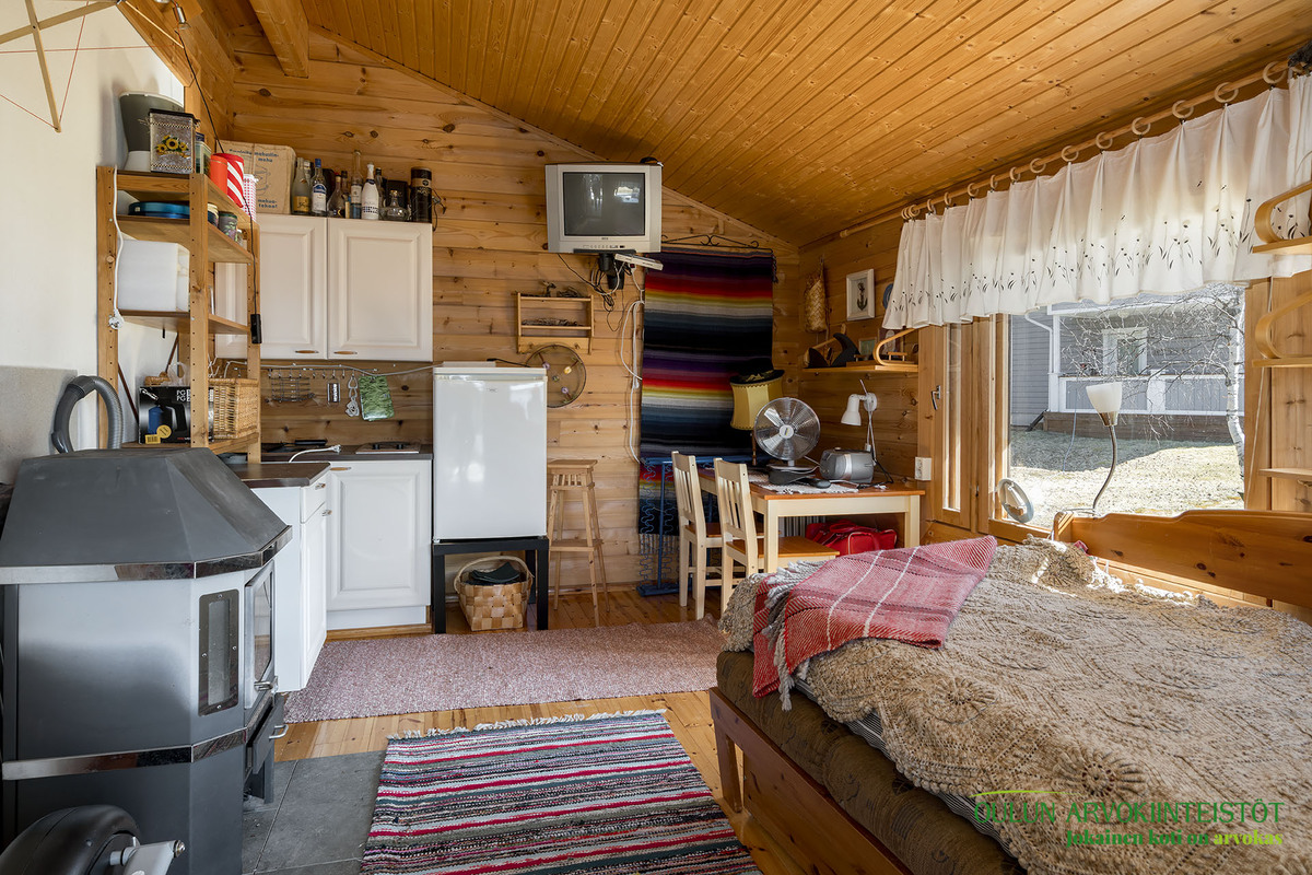 The yard is tidy and thoughtfully arranged. The property includes an 8 m² gazebo, a 10 m² storage building, a 12 m² barn, a root cellar, a greenhouse, and a 25 m² sauna building with a lounge and fireplace room. This setup supports both everyday convenience and relaxing downtime – no matter the time of year.