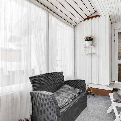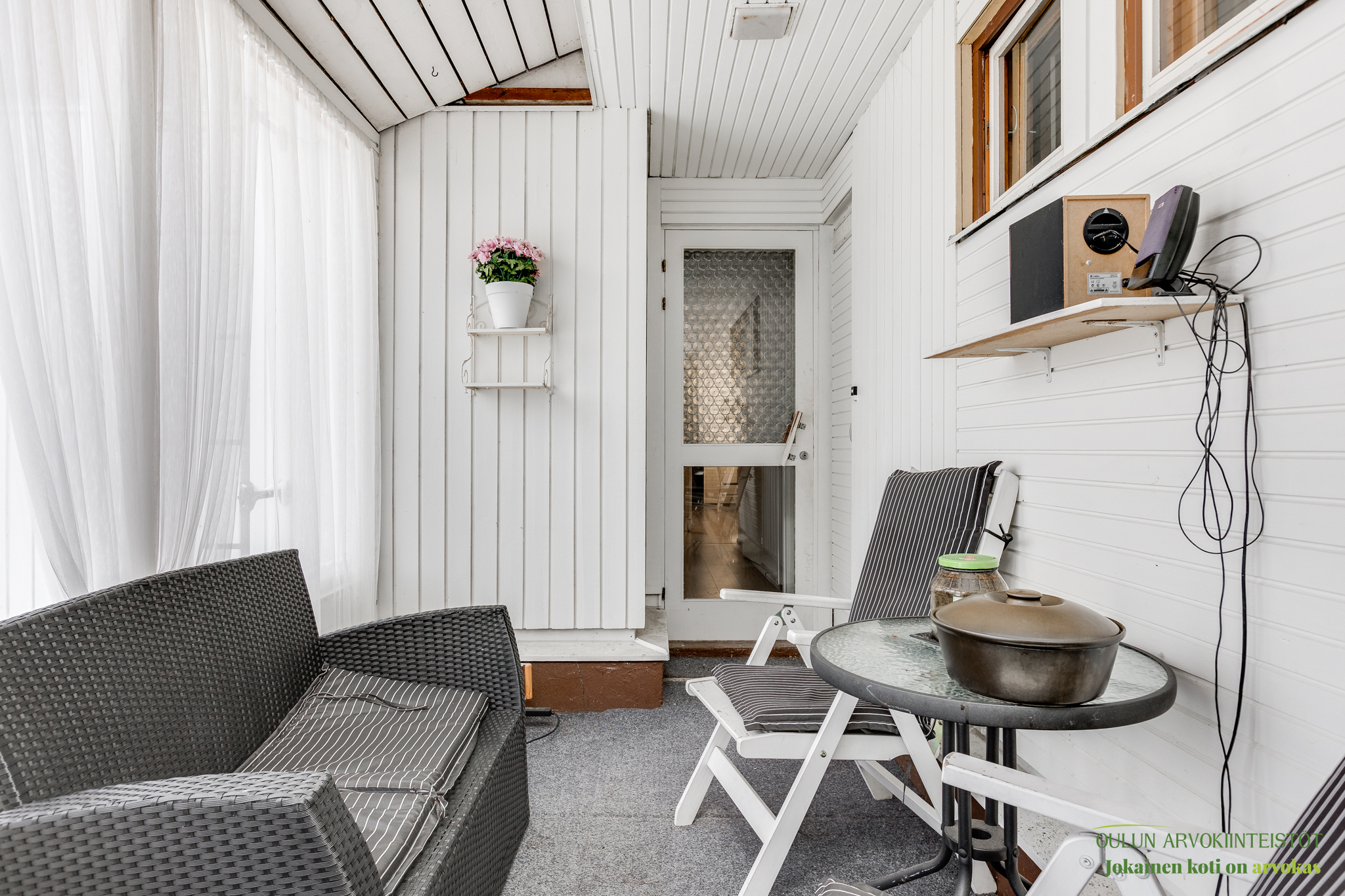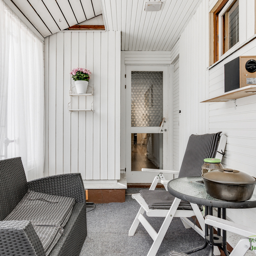 Katettu terassi on kuin lisähuone sisäpihalle päin. Tämä vilvoitteluterassi tarjoaa oivan paikan nauttia ulkoilmasta ja lisää asumismukavuutta.