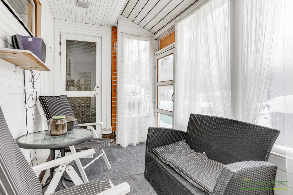 Varusteet: kaapistot, sälekaihtimet/rullaverhot, naulakko, kiinteät valaisimet, lämminvesivaraaja, matontamppausteline, pyykinkuivausteline, jätesäiliö