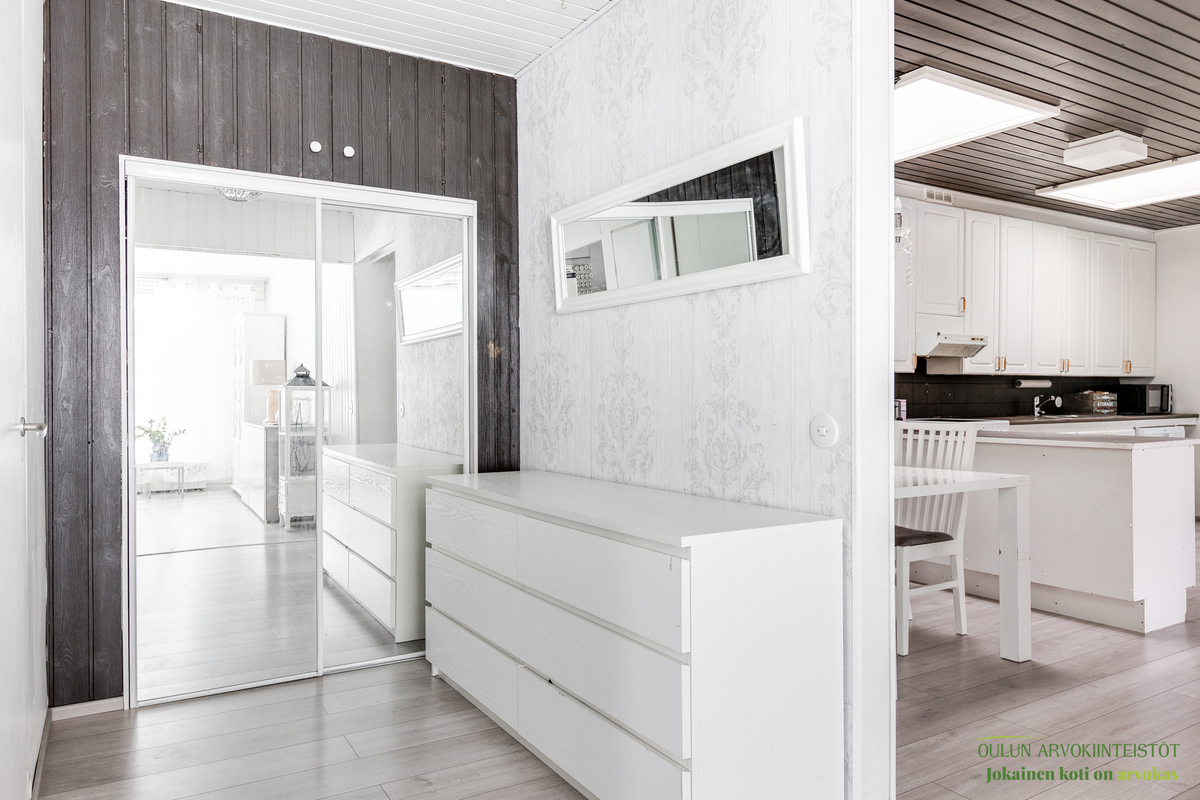 Laajempi pintaremontti toteutettiin vuosina 2016-2022, jolloin koti sai uutta ilmettä. Hyvin suunniteltu pohjaratkaisu ja vaaleat pinnat tekevät tästä kodista valoisan ja viihtyisän. Neljä makuuhuonetta käytävän varrella tarjoavat tilaa ja mahdollisuuksia eri tarpeisiin.