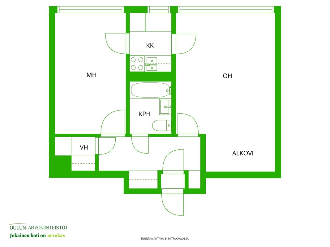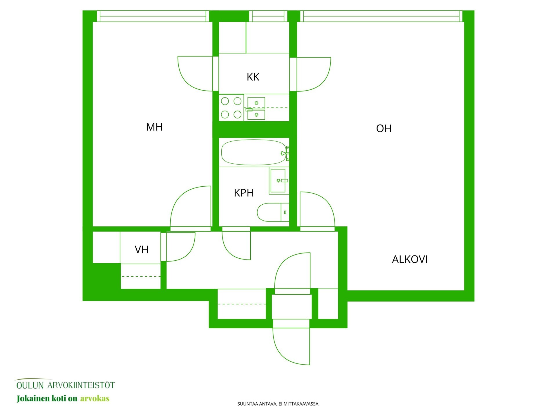 Kerrostalo, Aleksanterinkatu 56, Oulu, Heinäpää, 2h+kk+alk+kh, 45,00 m², 80 000,00 €