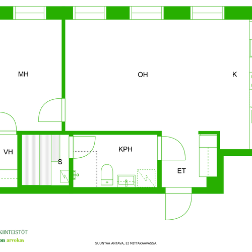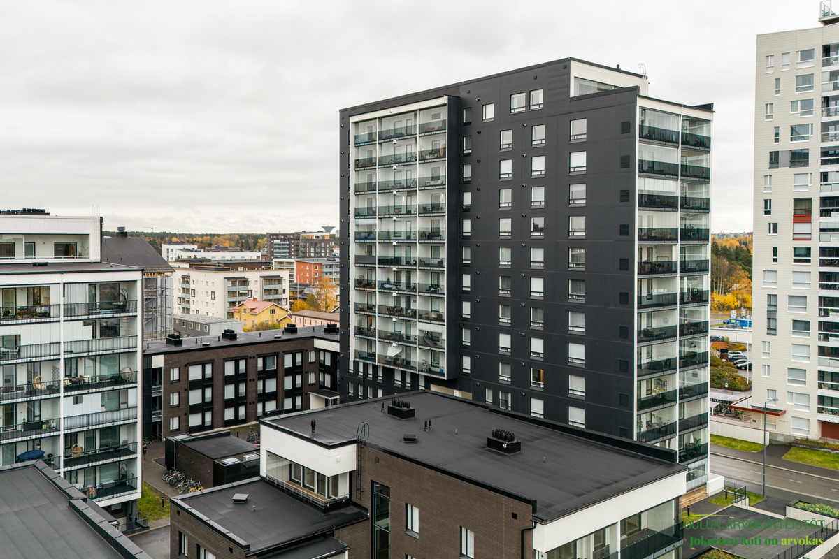 Varusteet: kaapistot, sälekaihtimet/rullaverhot, kiinteät valaisimet, huoneistokohtainen ilmanvaihtokone