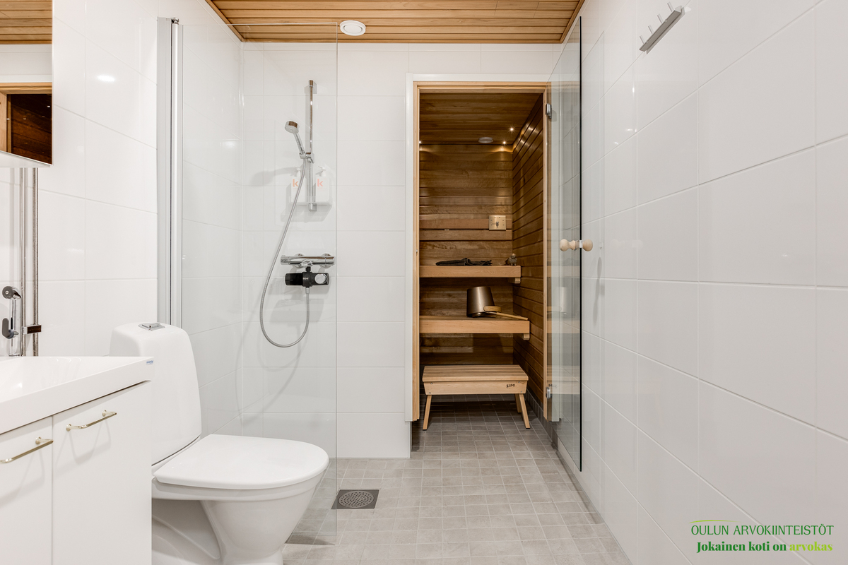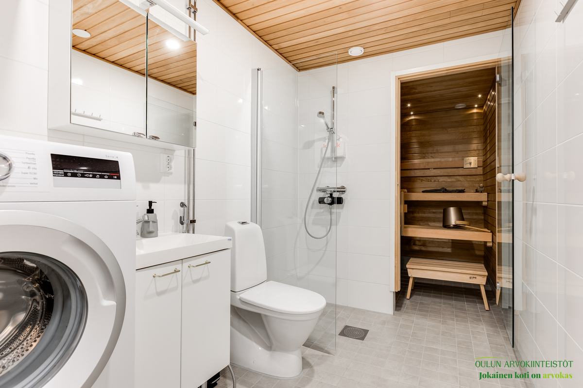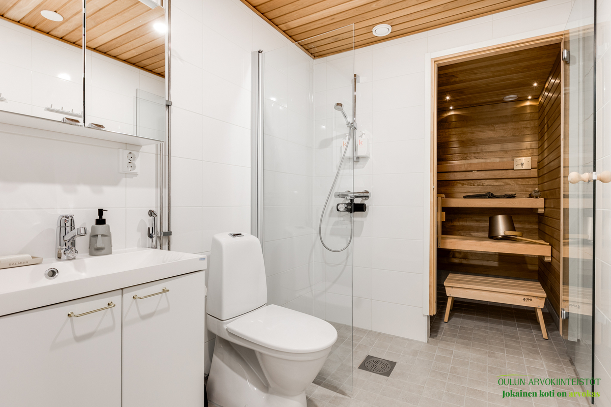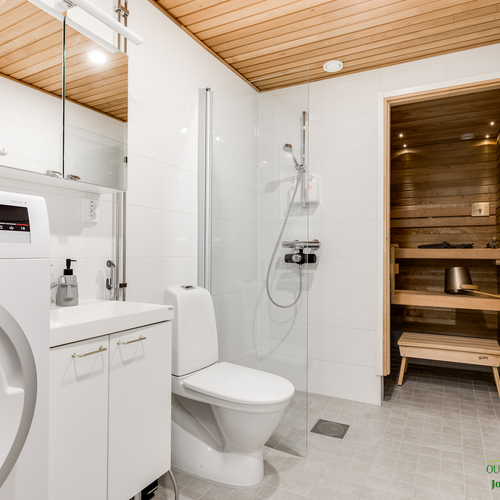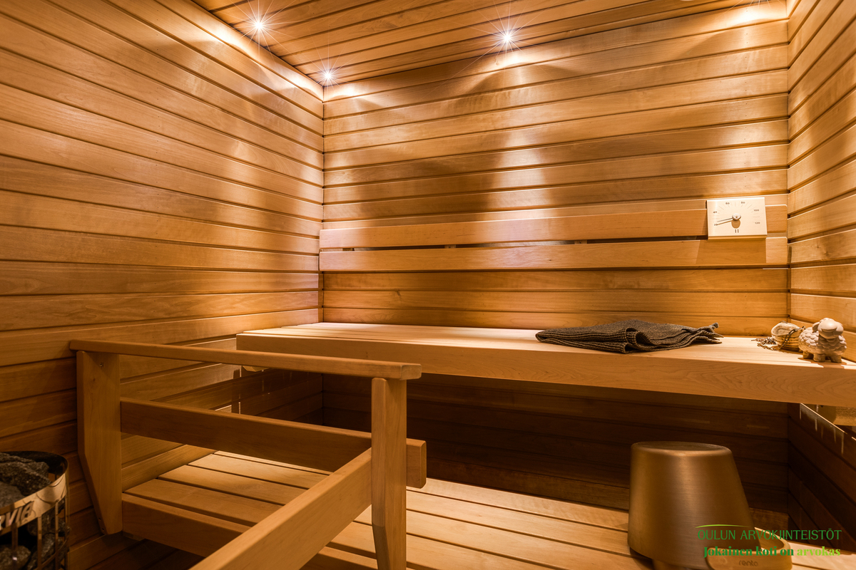 Asunnon kruunaa oma sauna, joka tarjoaa arjen ylellisyyttä ja rentoutumista juuri silloin kun haluat.