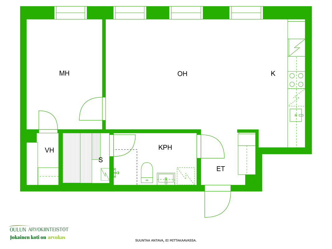 Varusteet: liesituuletin, mikroaaltouuni, astianpesukone, kiinteät valaisimet