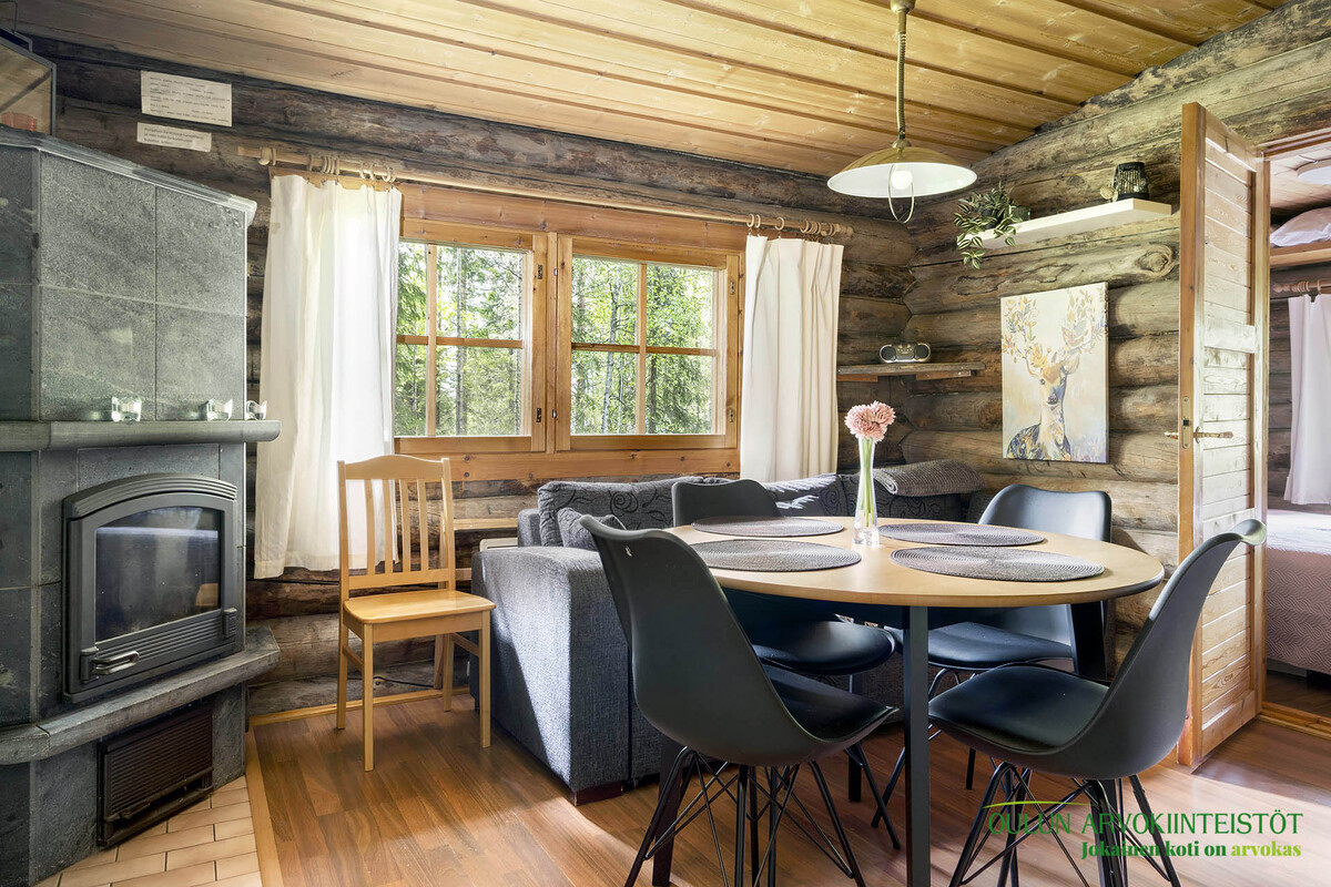 Mukavuuksiin kuuluvat kunnan vesi- ja viemäriliittymät, lattialämmitys, sähköpatterit, tunnelmallinen varaava takka sekä oma sauna, joka kruunaa kokonaisuuden. Hyvin suunniteltu pohjaratkaisu ja lämminhenkinen tunnelma tekevät mökistä toimivan ja viihtyisän niin omaan käyttöön kuin vieraillekin.