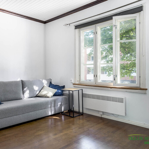 Tämä ensimmäisen kerroksen valoisa ja selkeäpohjainen yksiö tarjoaa toimivat neliöt ja miellyttävän tunnelman. Vuonna 2023 uusittu kylpyhuone tuo modernia ilmettä, joka istuu hyvin pitkän historian omaavan talon charmikkaaseen kokonaisuuteen. Asunto on siistissä kunnossa ja valmis ottamaan vastaan uudet asukkaansa.
