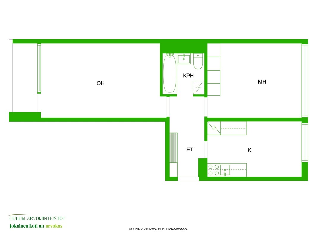 Nyt olisi tarjolla siistikuntoinen ja toimivapohjainen kaksio Oulun Linnankadulta. Tämä kolmannen kerroksen asunto sijaitsee erinomaisella paikalla aivan keskustan tuntumassa.