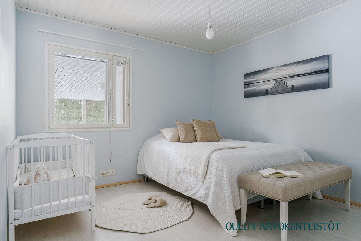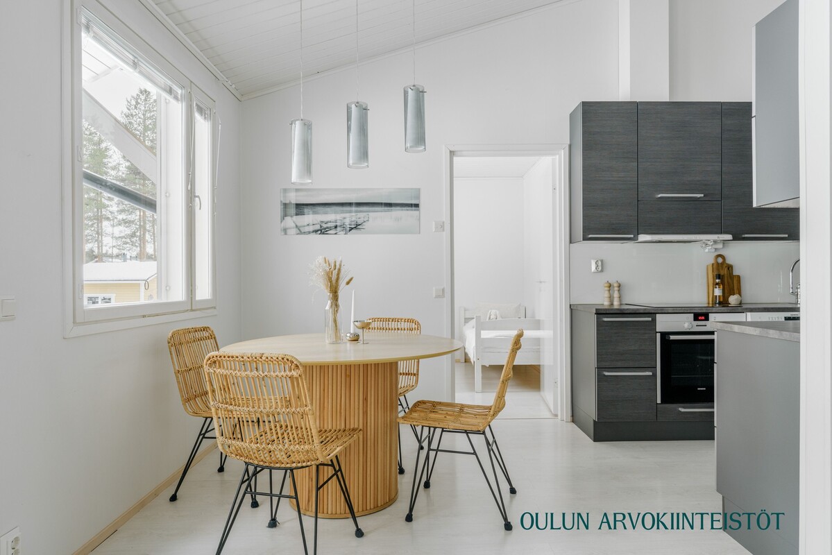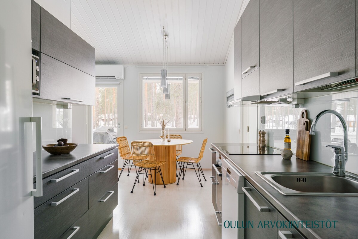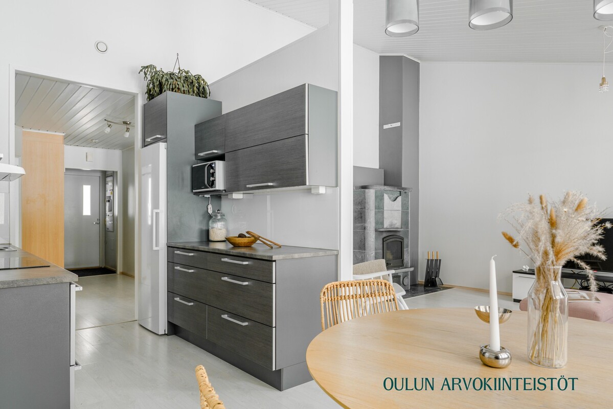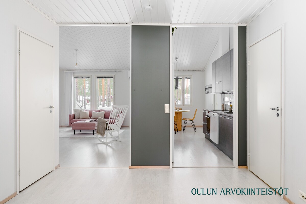 Kodissa on kolme makuuhuonetta, tilava olohuone sekä keittiö ruokailutiloineen. Olohuoneen korkea tila ja suuret ikkunat tuovat mukavasti valoa sisälle ja varaava takka luo tunnelmaa sekä auttaa lämmityskuluissa. Lisäksi asumismukavuutta lisää ilmalämpöpumppu.