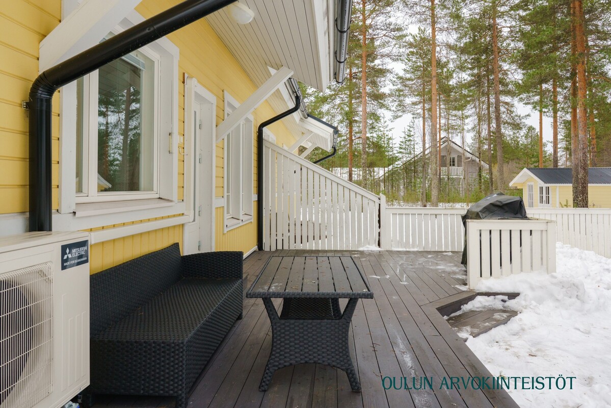 Takapihalla on aidattu piha-alue, joka tarjoaa suojaisan paikan oleskeluun sekä turvallisen ympäristön esimerkiksi lapsille tai lemmikeille. Sijainti on rauhallinen, luonnonläheinen ja Jäälinjärven ulkoilureitit sekä palvelut ovat lähellä.