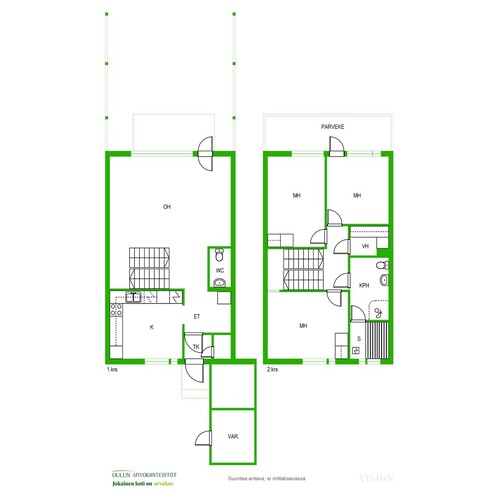 Alakerrasta löytyy keittiö, iso olohuone, sekä erillinen Wc.