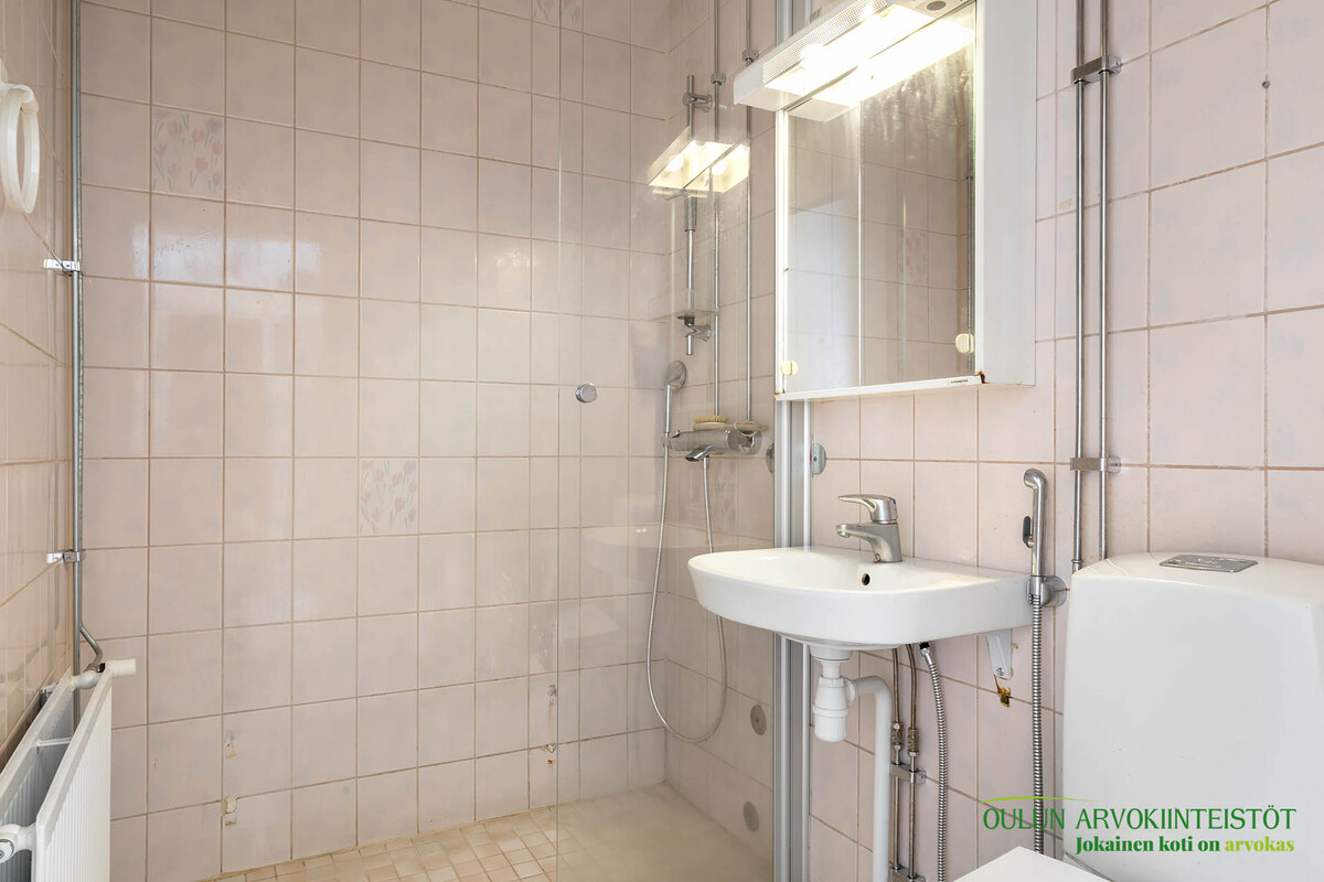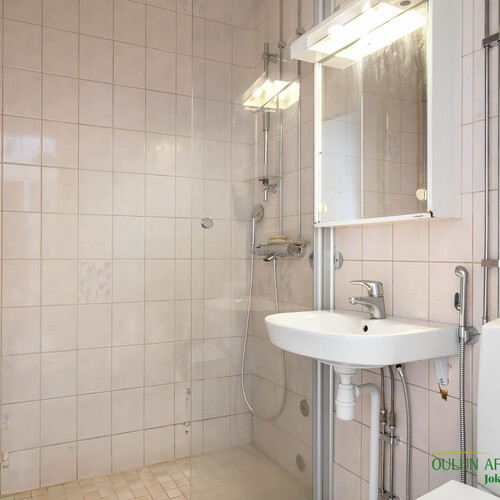 Varusteet: suihku, kiinteät valaisimet, peilikaappi