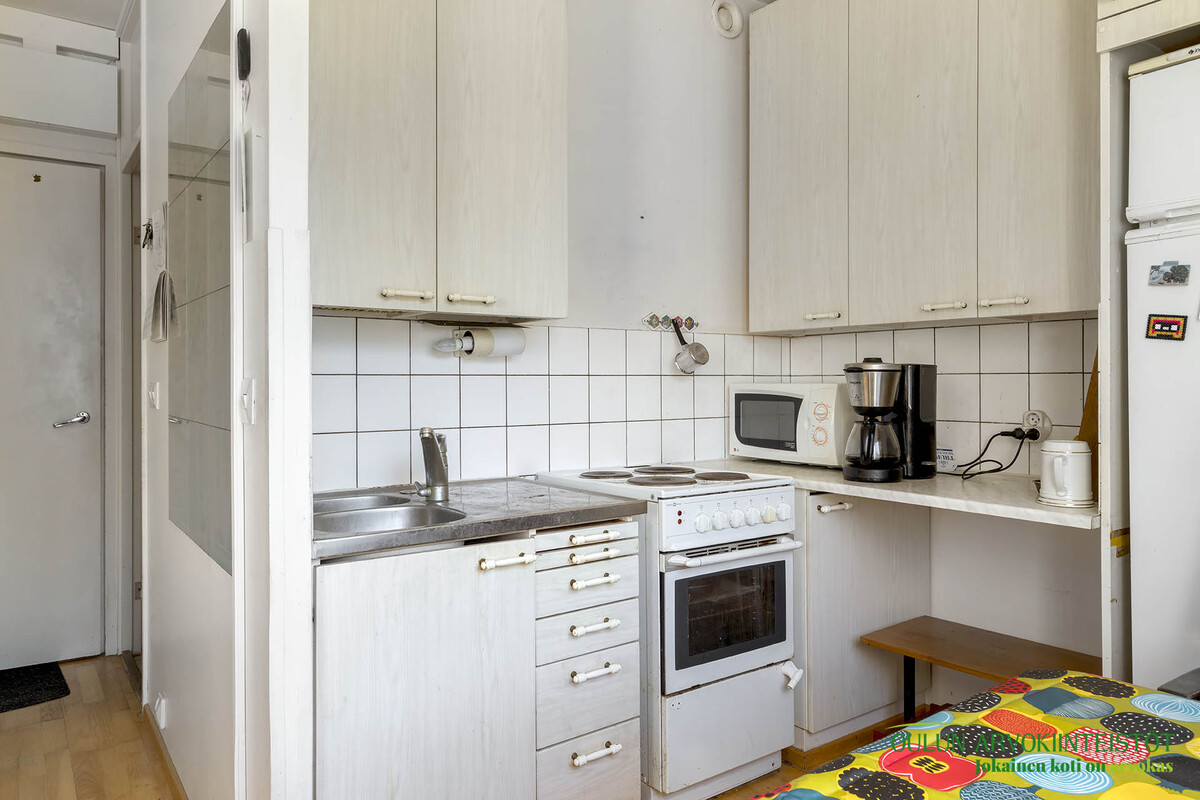 Varusteet: jääkaappipakastin, keraaminen liesi