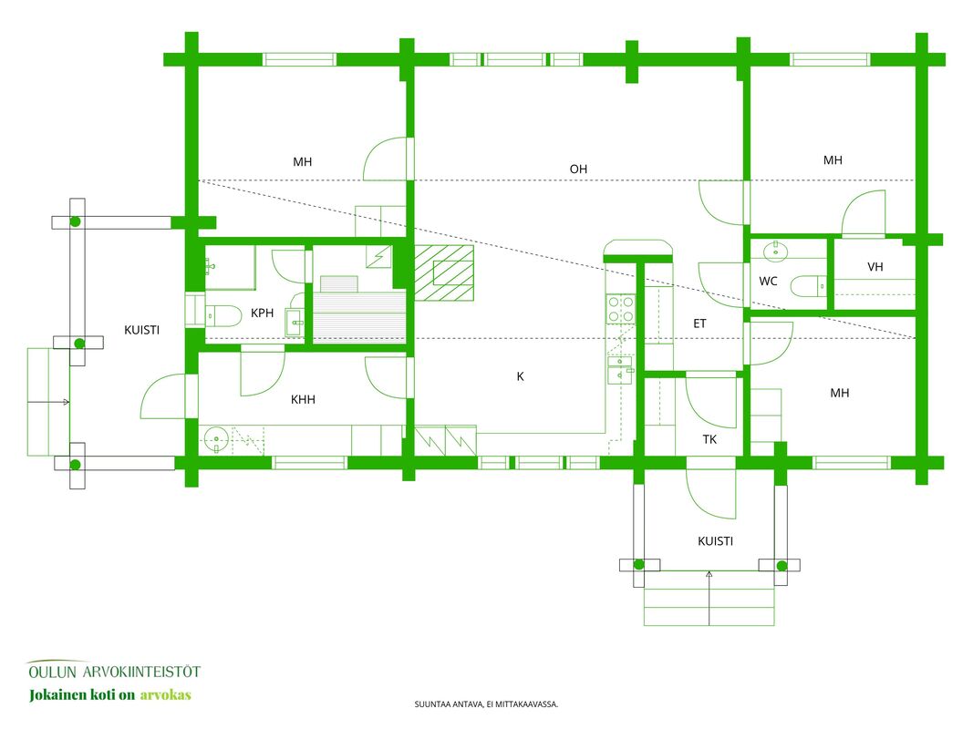 Lämmityksestä huolehtivat varaava vuolukivitakka sekä ilmalämpöpumppu, jotka pitävät kodin miellyttävän lämpimänä ja kustannukset kurissa. Kodinhoitohuoneesta on kätevä suora kulku ulos, arjen sujuvuutta parhaimmillaan.