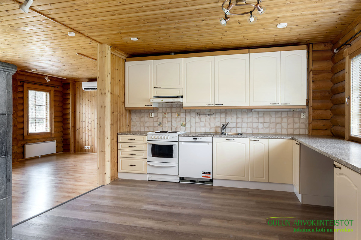 Talossa on kolme tilavaa makuuhuonetta, avara olohuone sekä hyvänkokoinen keittiö, joka on saanut uuden ilmeen vuonna 2022 tehdyssä remontissa. Kauniit hirsipinnat tuovat lämpöä ja kodikkuutta jokaiseen huoneeseen.