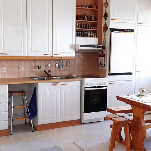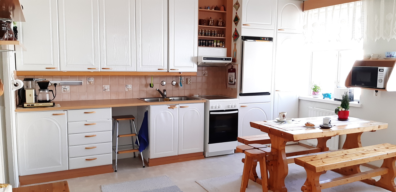 Varusteet: varattu paikka astianpesukoneelle, liesituuletin hormilla, pakastin, keraaminen liesi, liesituuletin